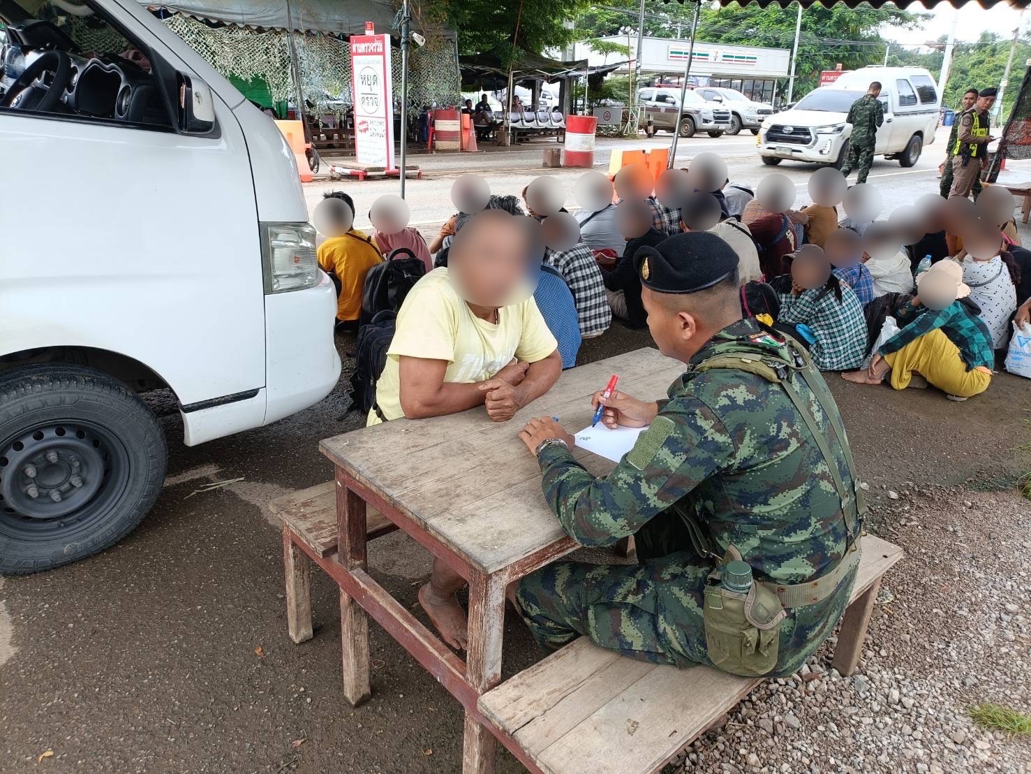 กาญจนบุรี ทหาร ฉก.ลาดหญ้า กกล.สุรสีห์ สกัดจับรถตู้ขนต่างด้าวเถื่อนเต็มคันรถ สารภาพได้รับค่าจ้าง 4,600 บาท