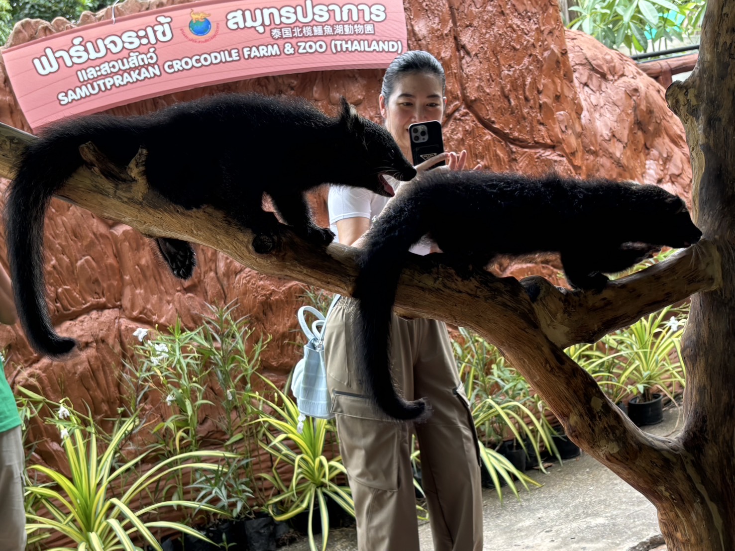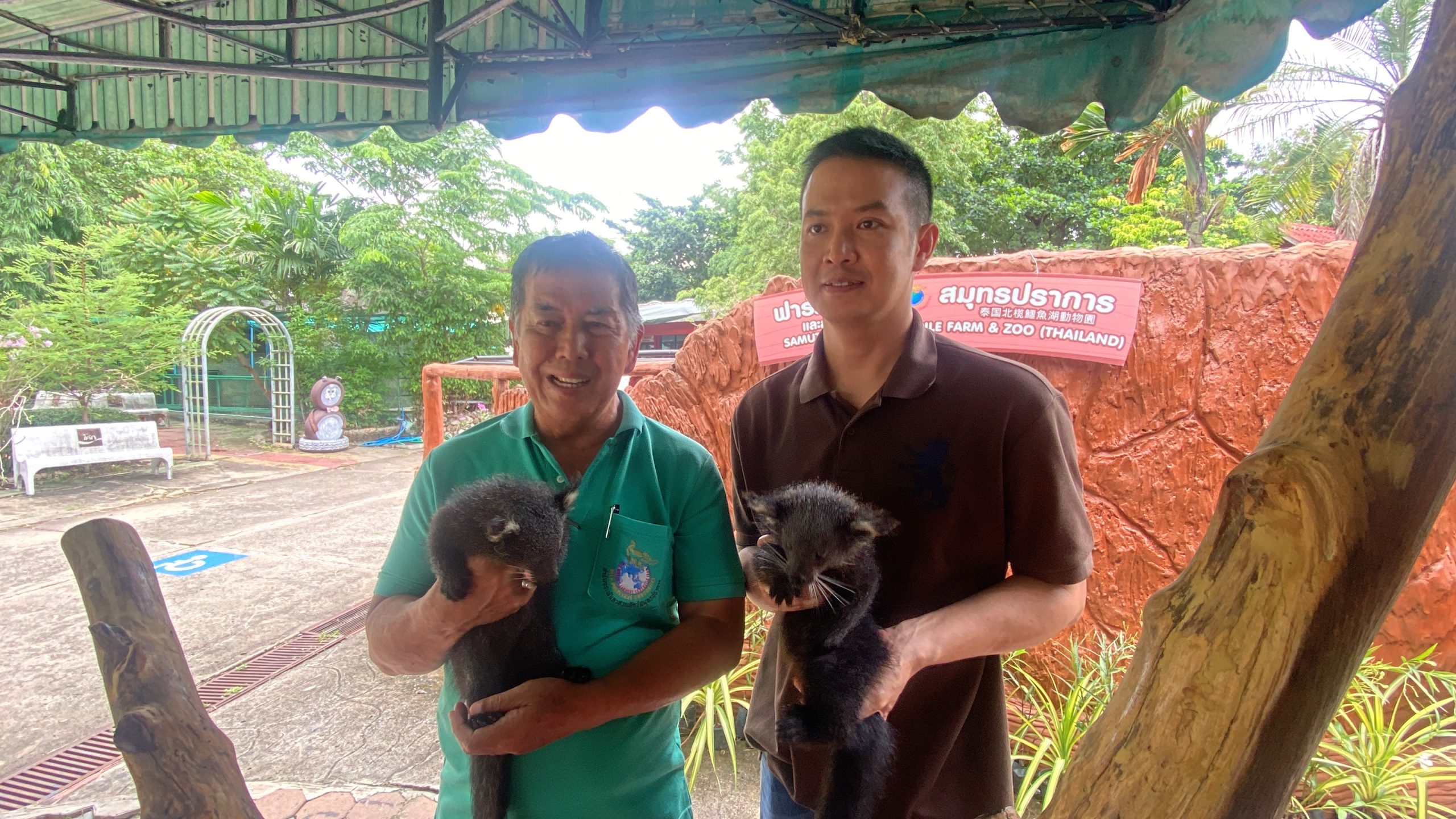 นายจรูญ ยังประภากร กรรมการบริหาร บริษัท ฟาร์มจระเข้และสวนสัตว์สมุทรปราการ จำกัด กล่าวว่า สืบเนื่องจากฟาร์มจระเข้และสวนสัตว์สมุทรปราการได้ทำการเพาะเลี้ยงสัตว์ป่าหายาก หมีขอก็เป็นสัตว์ป่าคุ้มครองที่หายากชนิดหนึ่ง เพราะอยู่ในป่าลึก ไม่ค่อยจะมีคนพบเห็นเท่าไหร่ ทางฟาร์มจระเข้และสวนสัตว์สมุทรปราการ จึงได้เพาะหมีขอและได้ลูกฝาแฝดออกมา 1 คู่ เมื่อวันที่ 10พฤษภาคม 2568ที่ผ่านมา ซึ่งเป็นวันหมีขอโลก ก็เลยประชาสัมพันธ์ให้ประชาชนผู้ที่สนใจได้ทำการประกวดตั้งชื่อ วันนี้ก็น่ายินดีที่ได้ผู้ตั้งชื่อมาเรียบร้อยแล้ว โดยใช้ชื่อว่า ชาโคล กับชาดำ วันนี้ก็เป็นวันที่มอบรางวัลตุ๊กตา หมีขอ พร้อมกับบัตรเข้าชมฟาร์มจระเข้ให้กับผู้ชนะการประกวด จำนวน 2 ใบ ซึ่งลูกหมีขอ เราได้เลี้ยงมาครบ 2 เดือนพอดี เขาก็เจริญเติบโต สมบูรณ์ แข็งแรง ค่อนข้างซน ปีนป่ายเก่งมาก เมื่อเขาปีนที่สูง เขาจะใช้หางม้วนเกาะกิ่งไม้ไว้ เพื่อความปลอดภัย เมื่อแขนขาเกาะพลาด หางเขาก็ยังเกี่ยวไว้ได้ ถ้าใครอยากพบหมีขอ ก็ให้มาเยี่ยมชมได้ที่ฟาร์มจรเข้และสวนสัตว์สมุทรปราการซึ่งเปิดทุกวันตั้งแต่ 08.00-18.00น. และนอกจากการโชว์จระเข้ การโชว์ช้าง ก็ยังมีสวนสัตว์ป่า สวนสัตว์บ้านอีกมากมายและพยายามฝึกสัตว์ทั้งหลายให้เป็นมิตรกับนักท่องเที่ยว ที่เข้ามาที่ฟาร์มจระเข้ฯอีกด้วย