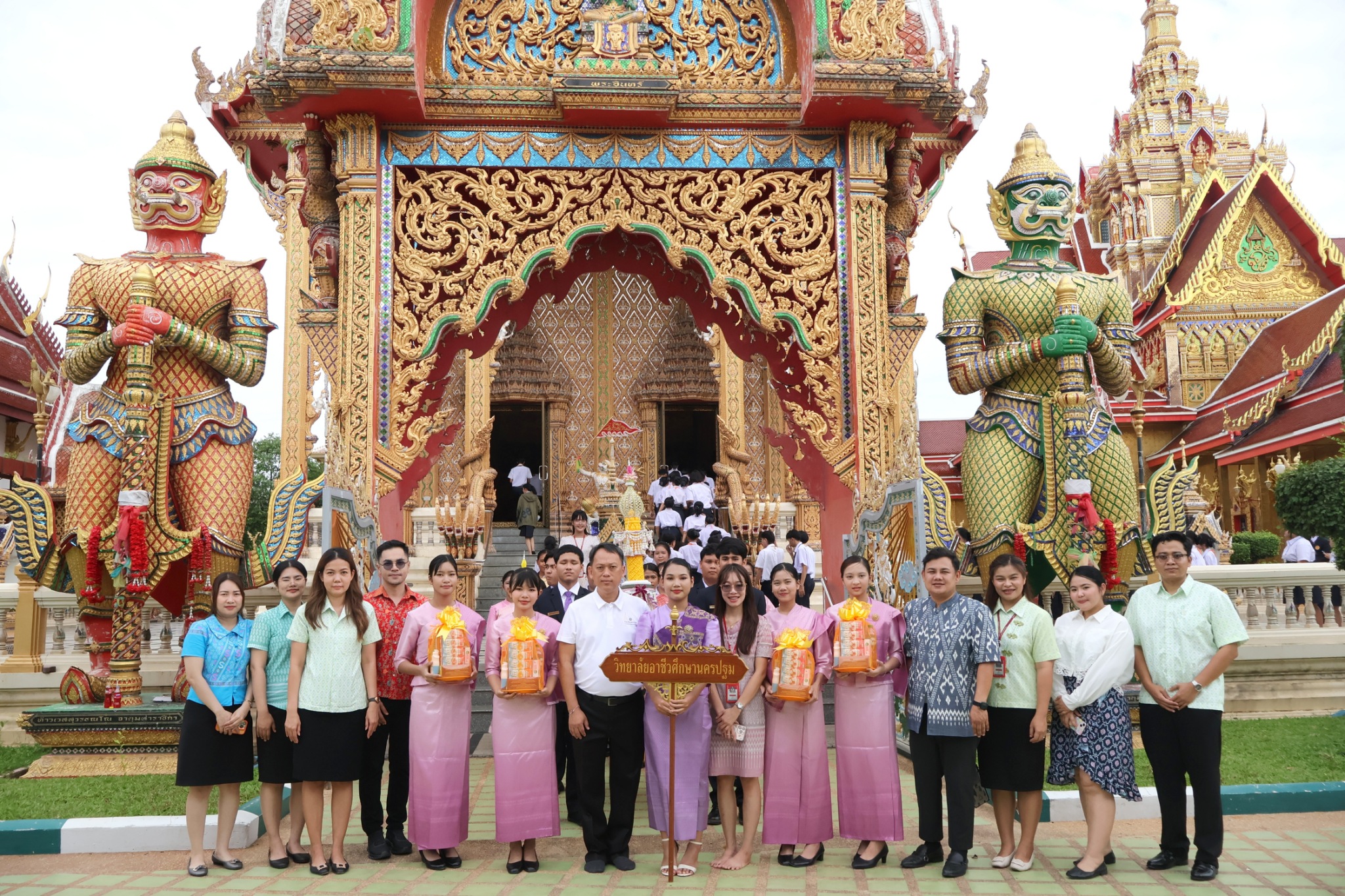 โดย 6 สถาบันการศึกษาที่ได้นำเทียนพรรษา มาถวายในวันนี้ประกอบด้วย ศูนย์พัฒนาเด็กก่อนวัยเรียนวัดไผ่ล้อม (พระครูปลัดสิทธิวัฒน์อุปถัมภ์) วิทยาลัยอาชีวศึกษาเทศบาลจังหวัดนครปฐม โรงเรียนวัดห้วยจรเข้วิทยาคม วิทยาลัยอาชีวศึกษาจังหวัดนครปฐม โรงเรียนพระปฐมวิทยาลัย โรงเรียนอนุบาลจังหวัดนครปฐม ซึ่งล้วนเป็นสถานศึกษาที่อยู่ใกล้เคียงพื้นที่