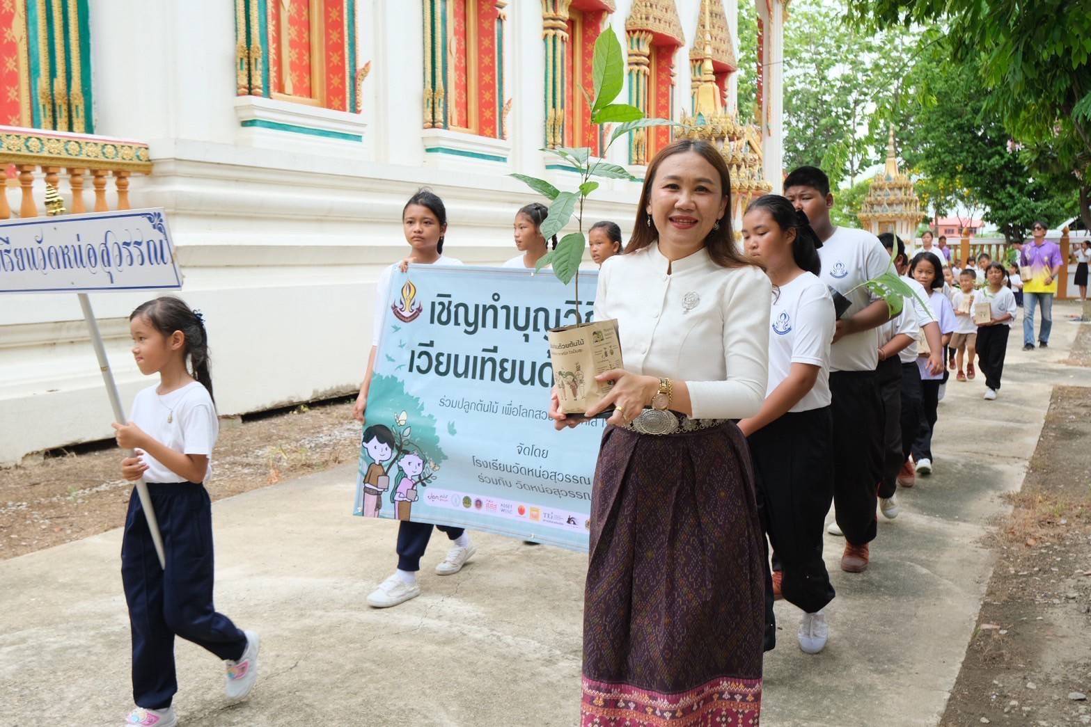 ซึ่งโรงเรียนวัดหน่อสุวรรณได้รับการสนับสนุนต้นไม้จากสถานีเพาะชำกล้าไม้ จังหวัดสุพรรณบุรี จำนวน 180 ต้น กิจกรรมนี้มุ่งหวังให้เกิดความร่วมมือ ระหว่างภาคส่วนต่าง ๆ ในการส่งเสริมการทำบุญวิถีใหม่ ที่บูรณาการการอนุรักษ์สิ่งแวดล้อม ลดฝุ่น PM 2.5 และสร้างพื้นที่สีเขียว เพื่อสร้างสุขภาวะที่ยั่งยืน ให้กับสังคม ตามแนวทางพระพุทธศาสนาและการอนุรักษ์ธรรมชาติ