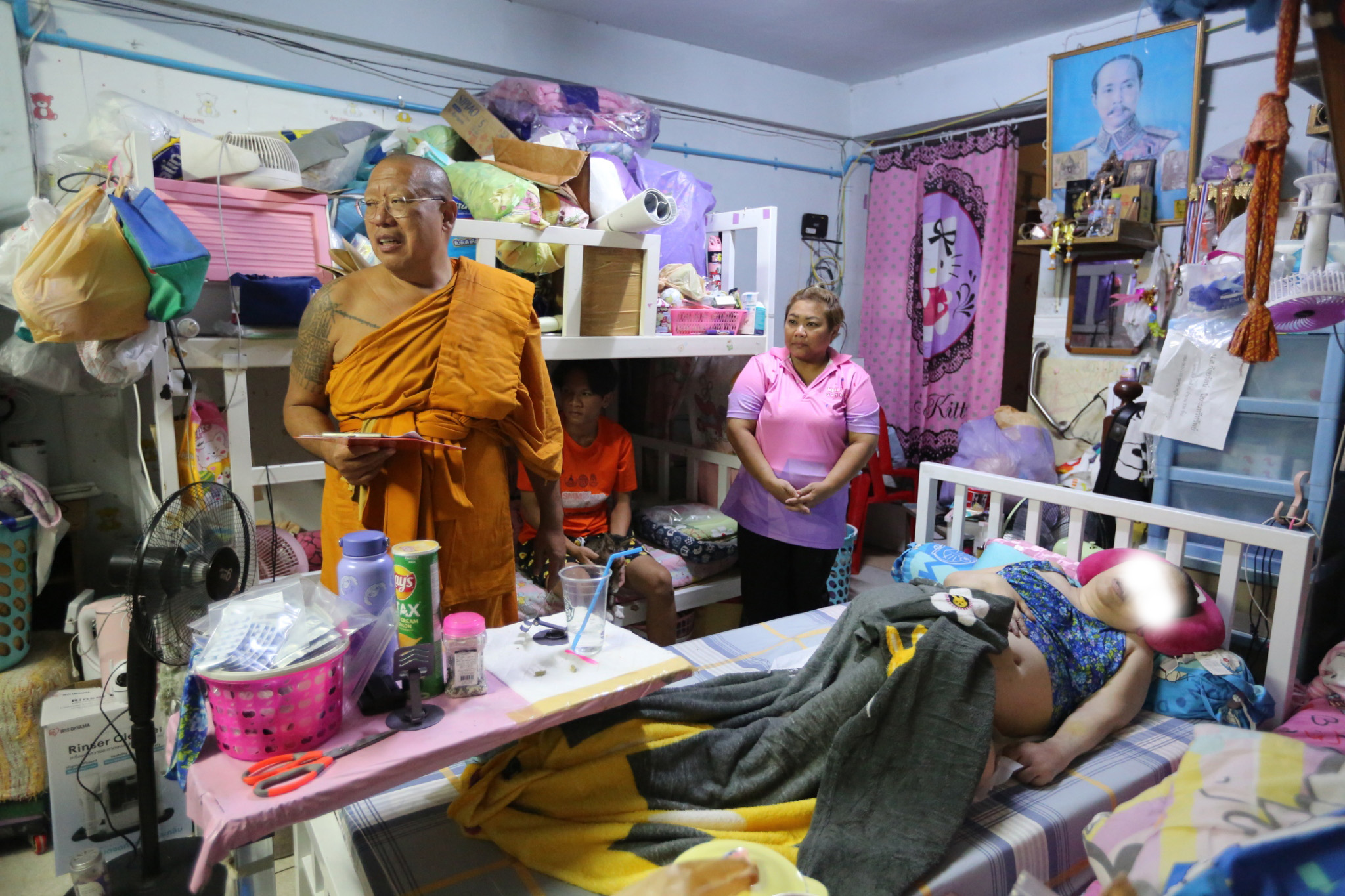 ทั้งค่าใช้จ่ายของบ้าน ค่ารักษา และการดูแลลูกอีก 2 คนของตนแม้ชีวิตจะเหนื่อย…แต่หลานคนนี้ไม่เคยบ่น ไม่เคยละทิ้งผู้ป่วยยังคงมุ่งหน้าทำงานเป็นหมอนวดที่ร้านในซอยต้นสน ด้วยหัวใจที่เปี่ยมด้วยความกตัญญูเมื่อได้รับคำขอความอนุเคราะห์ “เตียงผู้ป่วย”อาตมาและทีมจึงเร่งเข้าช่วยเหลือทันที ด้วยศรัทธาที่เกิดจากการเห็นความจริงของชีวิตเพราะการให้…ไม่จำเป็นต้องรอให้เขาร้องขอแต่ควรเริ่มจากใจ…ที่พร้อมแบ่งปัน