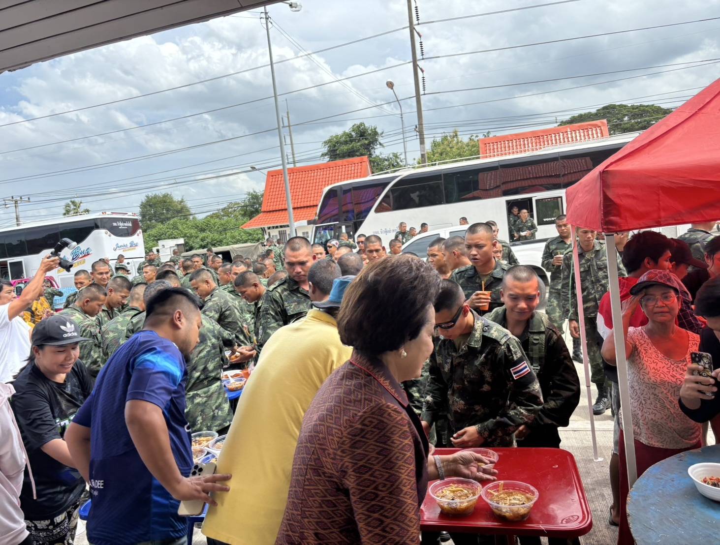 ทหารจาก พล.ร.9 จำนวน 500 นาย มุ่งเป้าไปสระแก้ว เดินทางออกจากกาญจบุรีเวลา 9.00 น. ผ่านอู่ทองสุพรรณ – อ่างทองเส้นป่าโมก มาอำเภอบางปะหัน ตัดออกอำเภอภาชี มุ่งหน้ามาหินกอง จะมาถึงหินกองประมาณ 14.00 น.. เพื่อเติมน้ำมัน ท่านใดรักชาติต้องการให้กำลังใจทหาร น้ำสักขวด ขนมปัง อาหารที่ท่านแบ่งปั่งดูแลทหาร มามอบด้วยตัวเอง เพื่อแนวหน้าของเรา (ไม่รับเงิน) ขอรับเสบียงเพื่อจะได้มีแรงต่อสู้ หลังจากนั้นนายก อบจ นำอาหารมาเลี้ยงทหาร ข้าว กระเพราะปลา อาหาร ของหวาน ตลอดเส้นทางผ่าน ได้มีประชาชนได้ออกมา ให้กำลังใจกันเป็นจำนวนมาก และมอบสิ่งของสะเบียงอาหารและให้กำลังใจทหารๆทุกๆคน