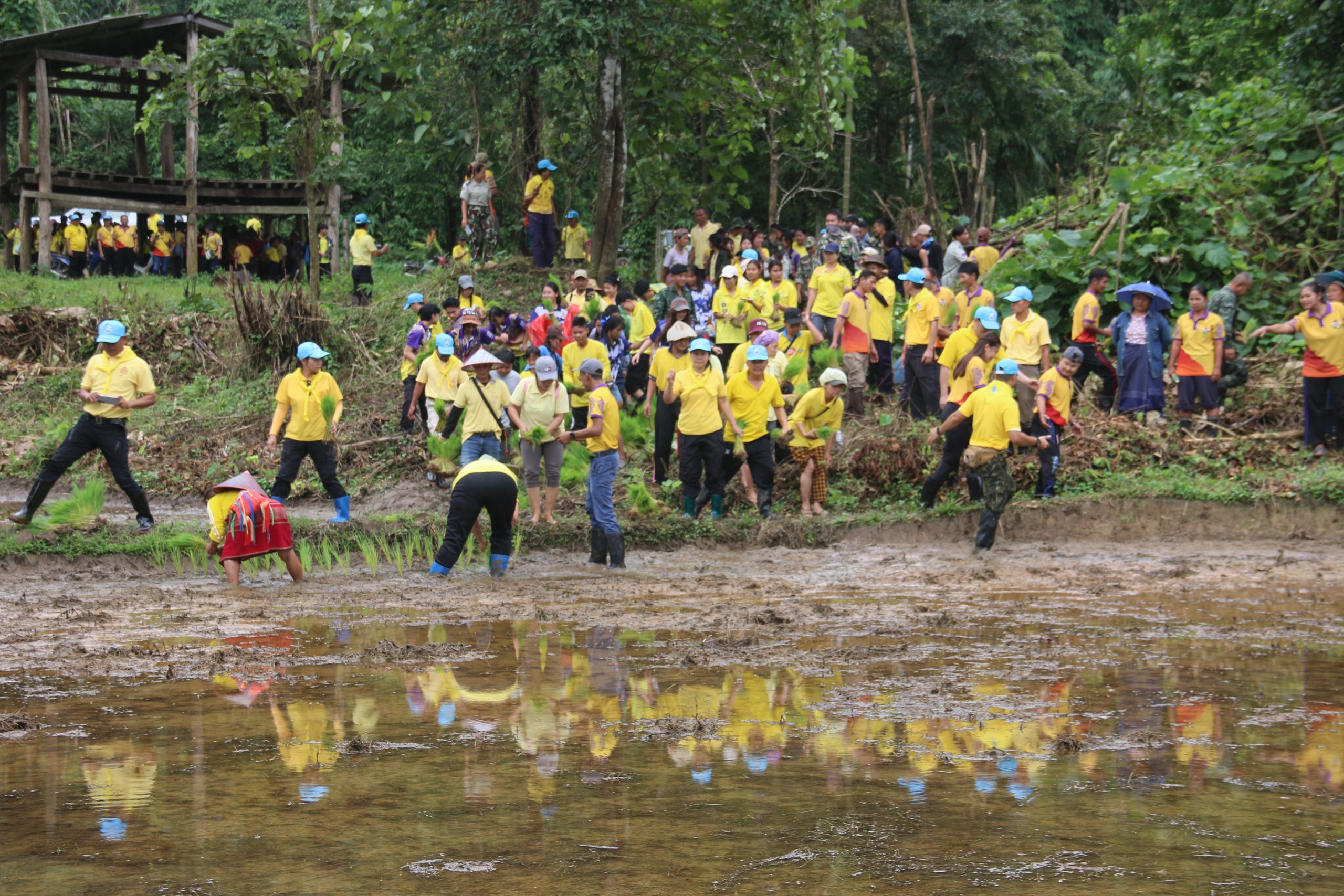 อำเภอสังขละบุรี จึงได้ร่วมกับส่วนราชการ จิตอาสา คณะครูและนักเรียนชมรมกำนัน ผู้ใหญ่บ้าน คณะกรรมการหมู่บ้าน อพป.และชาวบ้าน รวมถึงหน่วยงานต่างๆที่ได้สนับสนุนการจัดกิจกรรม เพื่อเป็นการแสดงความจงรักภักดี และน้อมสำนึกในพระมหากรุณาธิคุณ จึงได้จัดกิจกรรมดำนา ในแปลงนารวม บ้านสาละวะ ตามโครงการ “การทำนารวม สานสามัคคี สืบทอดวิถี ประเพณี วัฒนธรรม และการอนุรักษ์ผืนป่า”เพื่อเป็นการสืบสานพระปณิธาน