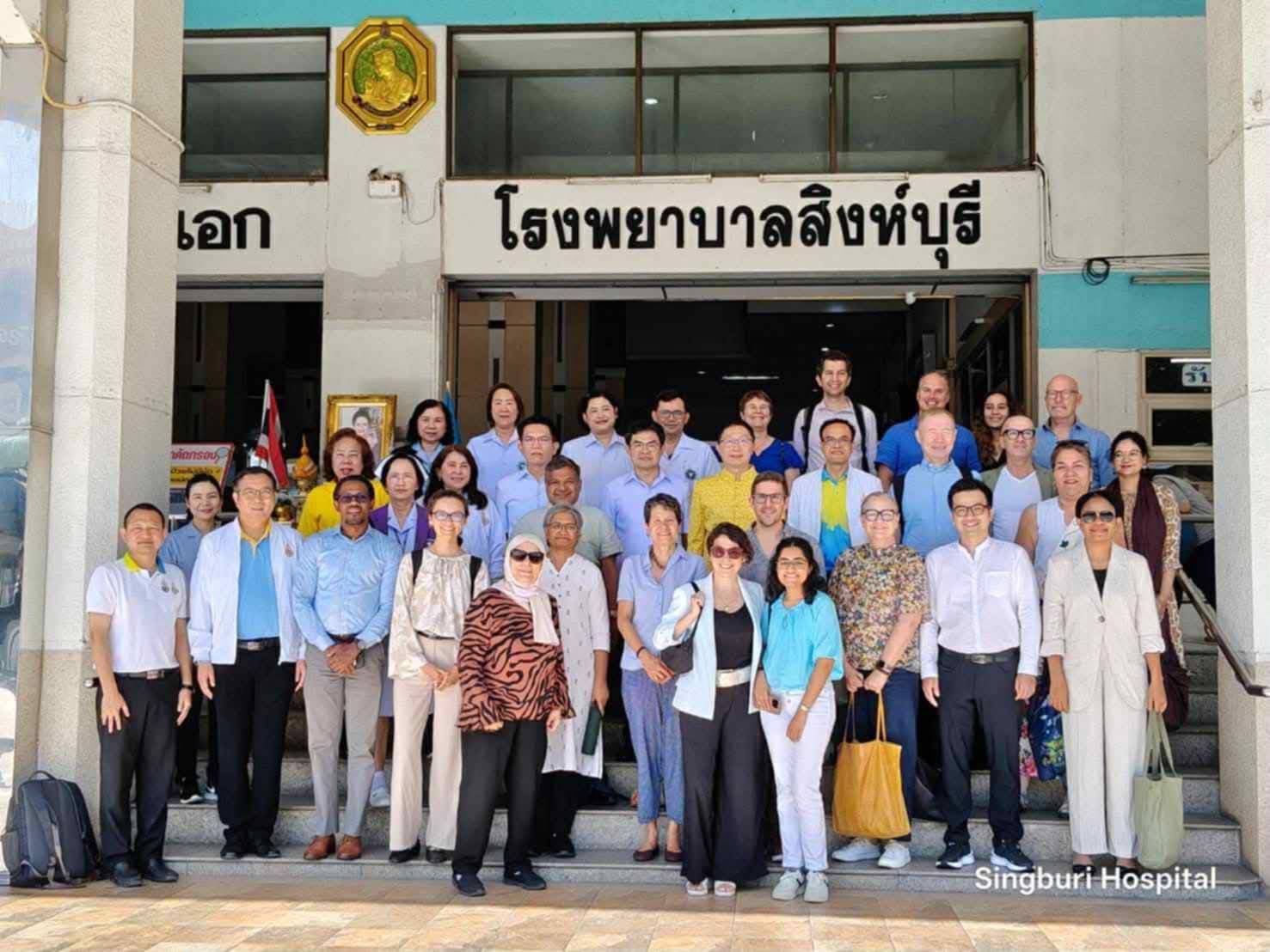 วันที่ 5 สิงหาคม 2568 เวลา 09.00 น. ณ ห้องประชุมอัมพวัน ชั้น 6 โรงพยาบาลสิงห์บุรี จังหวัดสิงห์บุรีต้อนรับคณะกรรมการที่ปรึกษากิตติมศักดิ์ (advisory board) และคณะกรรมการ Lancet Global Health Commission on People-Centered Care for Universal Health Coverage นำคณะมาศึกษาดูงานการบริหารจัดการระบบบริการสุขภาพ ของจังหวัดสิงห์บุรี โดยศาสตราจารย์พิเศษ ดร.นายแพทย์วิชัย เทียนถาวร อธิการบดีสถาบันพระบรมราชชนก ให้เกียรติเป็นประธานในพิธีเปิดผ่านระบบการประชุมทางไกล นพ.วิญญู จันทร์เนตร นายแพทย์สาธารณสุขจังหวัดสิงห์บุรี มอบหมายให้ นพ.วิชัย ศรีอุทารวงษ์ ผู้อำนวยการโรงพยาบาลสิงห์บุรี กล่าวต้อนรับ พร้อมกันนี้พระครูสุนทรพัฒนาลังการ เจ้าอาวาสวัดโพธิ์แก้ว นพคุณ นายกองค์การบริหารส่วนจังหวัดสิงห์บุรี,รองผู้อำนวยการสำนักงานเขตพื้นที่การศึกษามัธยมศึกษาสิงห์บุรี อ่างทอง ผู้อำนวยการโรงเรียนสิงห์บุรี และคณะผู้บริหารจากสำนักงานสาธารณสุขจังหวัดสิงห์บุรี ร่วมให้การต้อนรับ