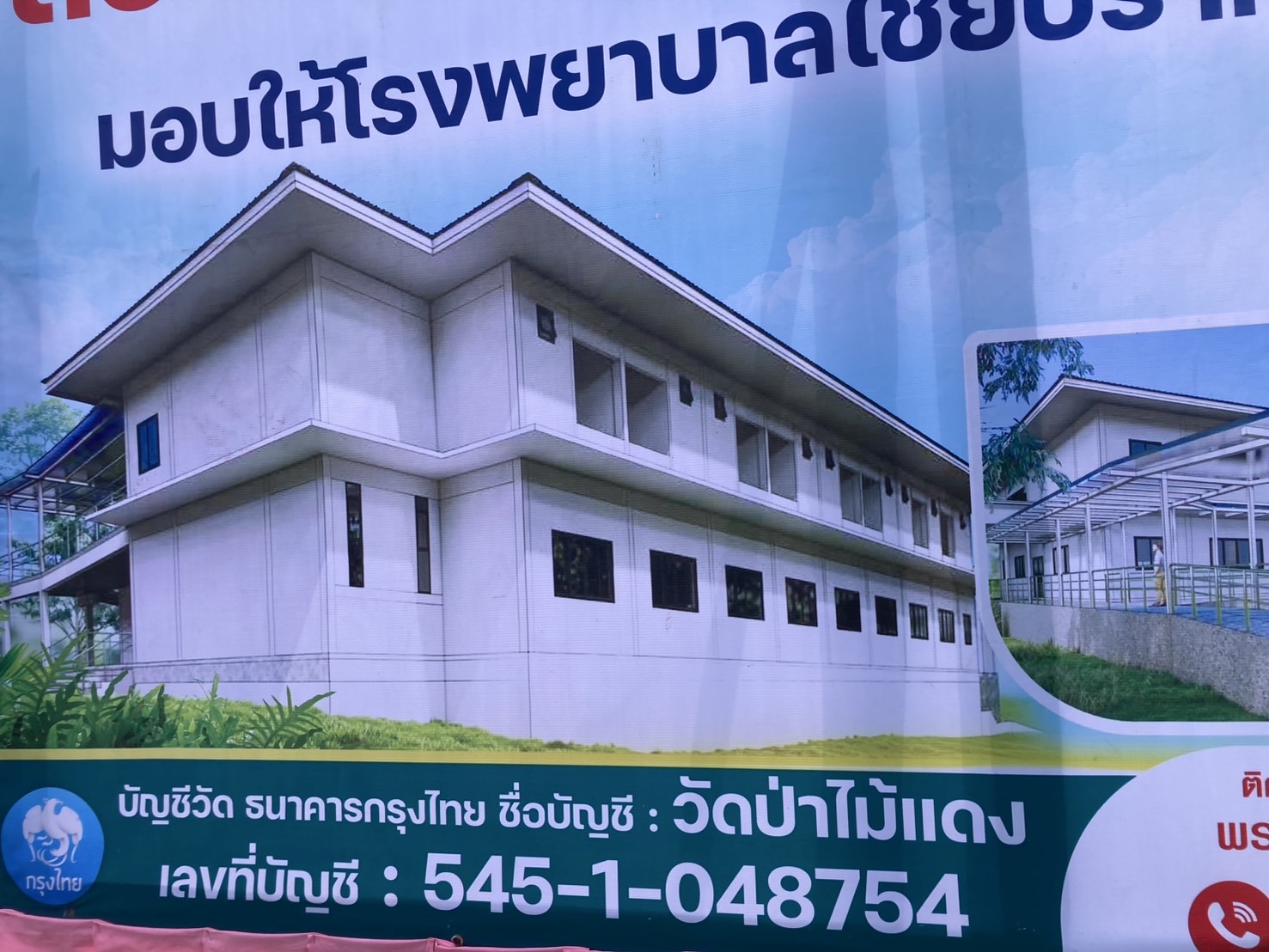 โดยทาง พระครูสถิตธรรมภิรักษ์ ดร. เจ้าคณะอำเภอไชยปราการ จังหวัดเชียงใหม่เจ้าอาวาสวัดป่าไม้แดง (พระเจ้าพรหมมหาราช) พร้อมทั้งญาติธรรมศานุศิษย์ ได้ร่วมกันจัดสร้างอาคารที่พัก 2ชั้น ขนาดกว้าง 18.5 เมตร ยาว40.8 เมตรมีเนื้อที่ทั้งหมด 1,400 ตารางเมตร ชั้นบนใช้เป็นตึกผู้ป่วยพิเศษ 12 ห้อง 36 เตียง ผู้ป่วยหลังคลอด 1ห้อง 5 เตียง ห้องพักพยาบาล 1ห้อง ส่วนชั้นล่างเป็นห้องอำนวยความสะดวกห้องจ่ายยา ห้องประชุม ห้องน้ำ ในราคางบประมาณในการก่อสร้าง 18 ล้านกว่าบาทเศษ ให้ผู้ป่วยในของโรงพยาบาลไชยปราการ เพื่อรองรับผู้ป่วย ในการจัดสร้างเพื่อถวายเป็นพระราชกุศลแด่ สมเด็จพระนางเจ้าสิริกิติ์ พระบรมราชินีนาถ พระบรมราชชนนีพันปีหลวง เนื่องในวันเฉลิมพระชนมพรรษา และถวายเป็นพระราชกุศลแด่พระบาทสมเด็จ พระวชิรเกล้าเจ้าอยู่หัว ทรงพระเจริญยิ่งยืนนาน จึงได้จัดพิธีวางศิลาฤกษ์ ในวันดีวันนี้ เป็นพิธีทางพระพุทธศาสนา นิมนต์พระสงฆ์ 9 องค์ มาประกอบพิธีและเจริญพระพุทธมนต์ ในพิธี แล้วจะได้เริ่มการก่อสร้างใช้เวลาในการก่อสร้าง 365วันให้แล้วเสร็จตามประสงค์เพื่อให้คนป่วย ได้มีที่พักรักษาตัวได้สะดวกขึ้น