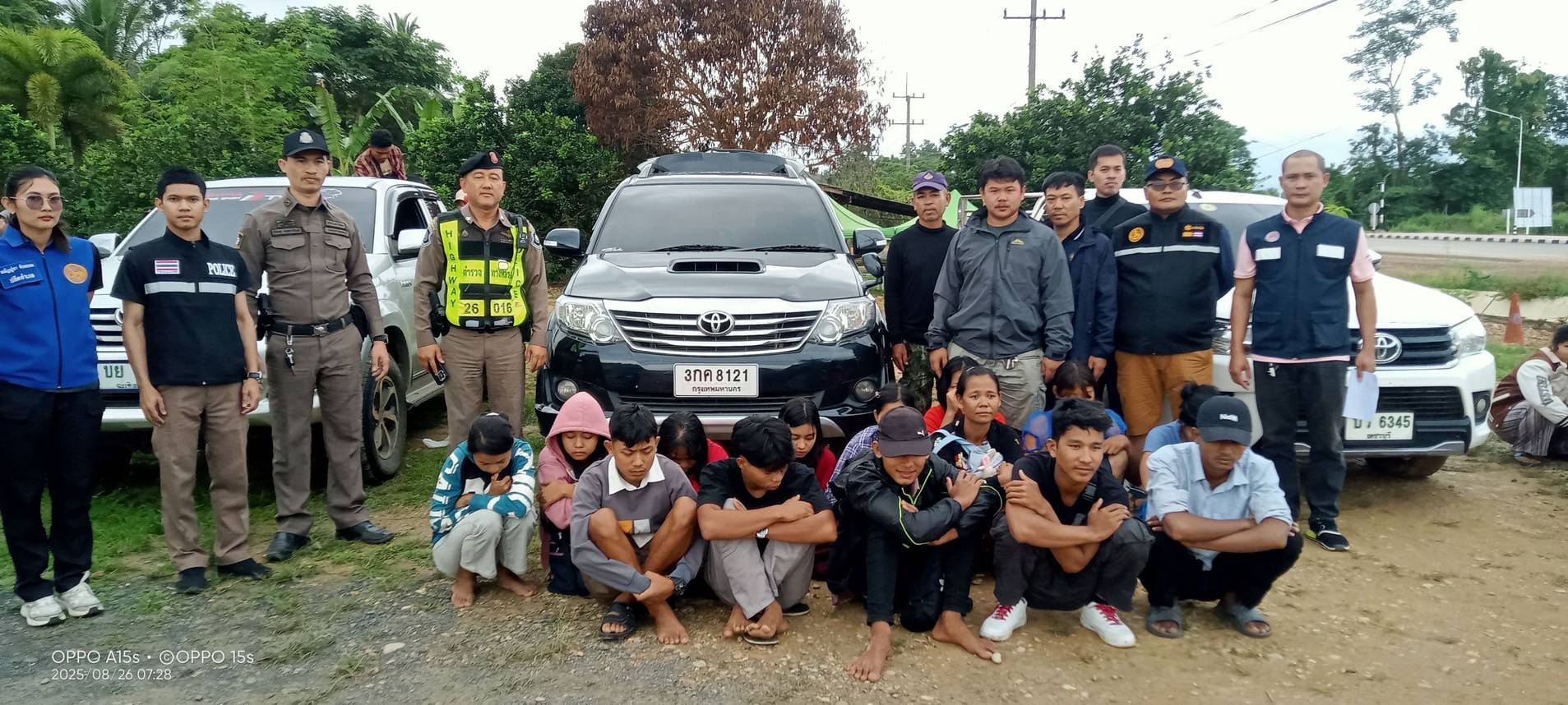 วันที่ 26 สิงหาคม 2568 นายอธิสรรค์ อินทร์ตรา ผู้ว่าราชการจังหวัดกาญจนบุรี นายวุฒิพงษ์ สุภัควนิช รองผู้ว่าราชการจังหวัดกาญจนบุรี นายทรัฑ เหลืองสอาด ปลัดจังหวัดกาญจนบุรี และนายชาคริต ตันพิรุฬห์ นายอำเภอทองผาภูมิ ได้รับบแจ้งจากสายข่าวว่าจะมีขบวนการลักลอบขนแรงงานต่างด้าวชาวเมียนมาเข้ามาในเขตพื้นที่อำเภอทองผาภูมิ ด้วยการใช้รถยนต์จำนวนหลายคัน