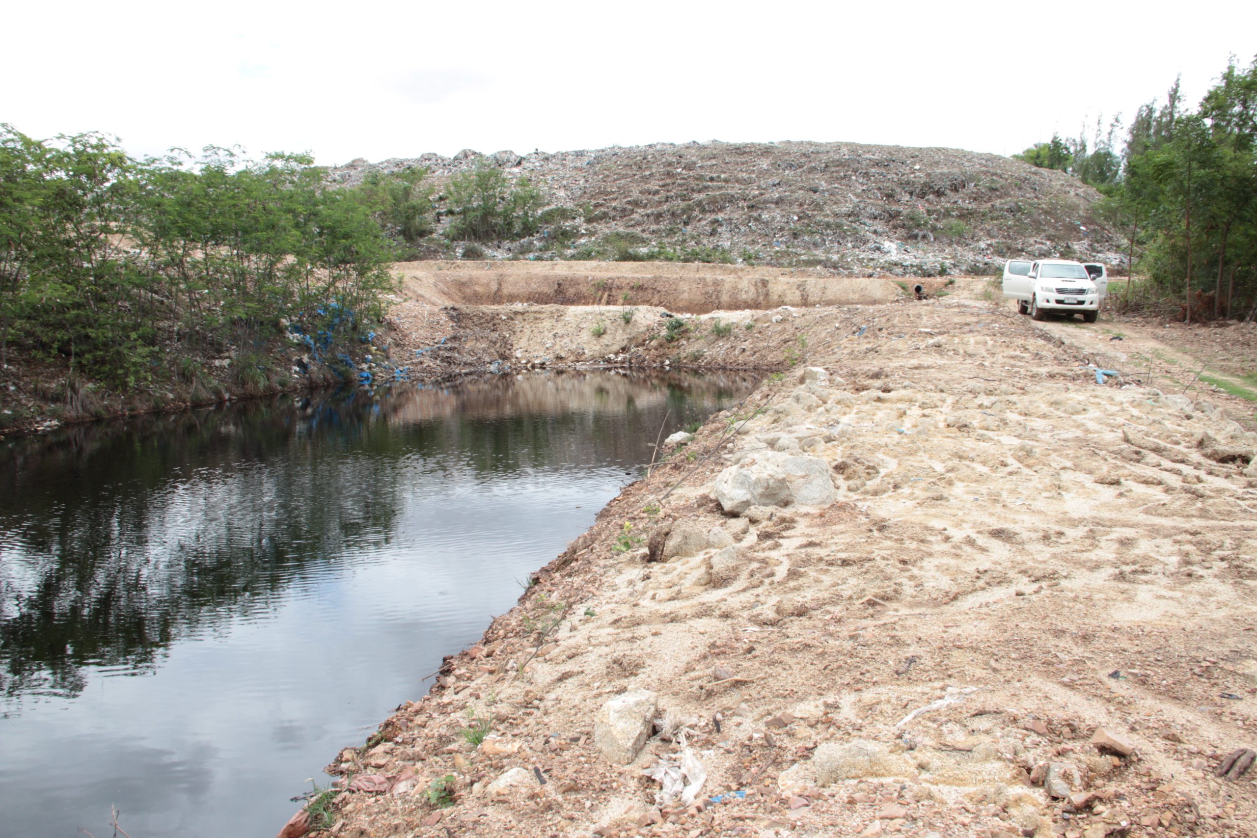 และพายุคาจิกิ ยังไม่สิ้นฤทธิ์ ในพื้นที่ยังคงมืดคลึ้ม แต่ฝนไม่หนักเช่นเมื่อ 2 วัน ที่ผ่านมา เพื่อเป็นการป้องกันน้ำล้นออกจากบ่อกักเก็บ จึงได้นำรถแบ็กโฮ เข้ามาเร่งทำแนวดินป้องกันน้ำ หากเกิดฝนตกซ้ำลงมาจะไม่ไหลไปสร้างความเดือดร้อนให้กับชาวบ้านได้ ซึ่งก่อนหน้านี้ทาง อบต. ได้ทำการขุดลอกบ่อทั้ง 4 บ่อ ไปแล้ว แต่เนื่องจากเกิดฝนตกมาหนักมาก จึงเกิดน้ำจากภูเขาได้ไหลลงมาเข้ามาก ดังนั้นจึงต้องเร่งขุดทำแนวดินเปลี่ยนเส้นทางไหลของน้ำจากภูเขาให้ไหลออกจากบ่อกักเก็บน้ำจากกองขยะ ไม่ให้เกิดการปะปนกันลดปัญหาความเดือดร้อนของชาวบ้าน