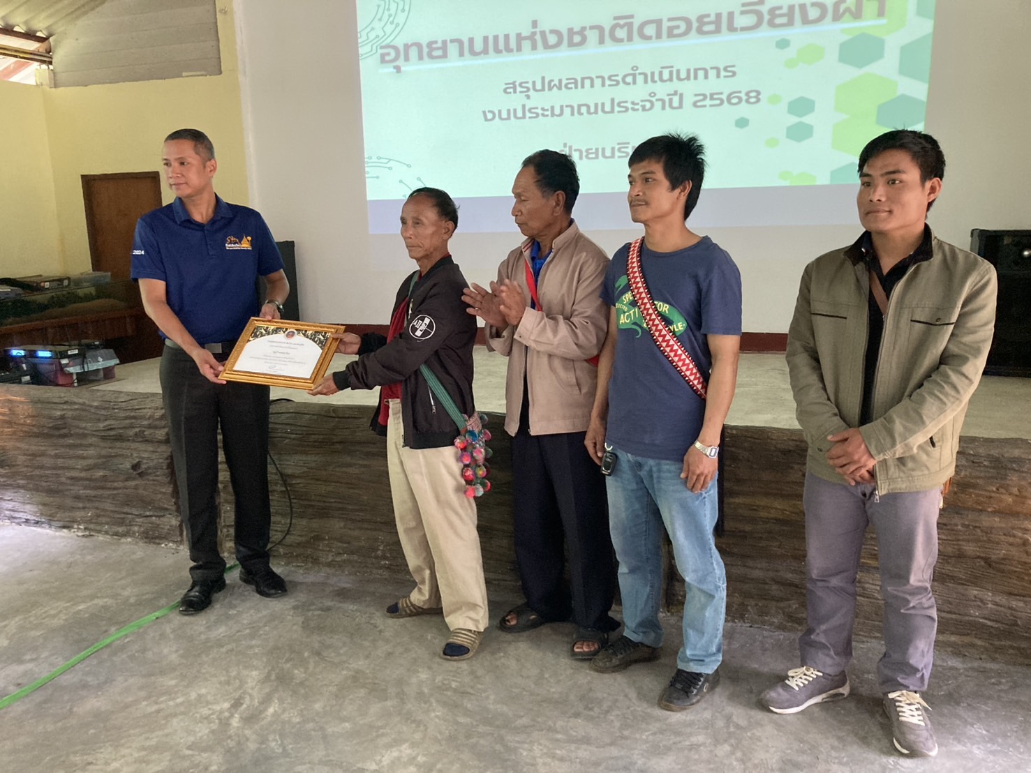 ซึ่งคาดว่าในเวลาไม่ช้าผู้บริหารระดับสูงของอุทยานแห่งชาติคงจะนำเข้าพิจารณาเพื่อให้เป็นอุทยานแห่งชาติอย่างสมบูรณ์แบบตามระเบียบของราชการต่อไป ซึ่งมีพระครูสถิตธรรมาภิรักษ์ เจ้าคณะอำเภอไชยปราการ จังหวัดเชียงใหม่ เจ้าอาวาสวัดป่าไม้แดง(พระเจ้าพรหมมหาราช) ได้มาเป็นประธานในการร่วมประชุม และมีปลัดอำเภอไชยปราการ ปลัดอำเภอฝาง จังหวัดเชียงใหม่ ปลัดอำเภอแม่สรวย จังหวัดเชียงราย(มาทำการแทนนายอำเภอ) พร้อม กำนันผู้ใหญ่บ้าน นายกองค์การบริหารส่วนตำบล ในพื้นที่ 3 อำเภอ 2 จังหวัด พร้อมคณะกรรมการที่ปรึกษา ตัวแทนผู้กำกับสถานีตำรวจภูธรไชยปราการ ตัวแทนทหารหน่วยเฉพาะกิจไชยานุภาพ กองกำลังผาเมือง ตัวแทนชุมชน 30 กว่าคนได้มาร่วมในการประชุมเพื่อพัฒนาให้เป็นแหล่งท่องเที่ยวเชิงอนุรักษ์ธรรมชาติ และสรุปผลการปฏิบัติงานที่ผ่านมา โดยนายมัญญา นาคพน หัวหน้าอุทยานแห่งชาติดอยเวียงผาเป็นผู้สรุปผลการปฏิบัติงาน เรื่องของไฟป่าในช่วงที่ผ่านมานั้นปี 2567 มีไฟป่าลุกไหม้จำนวน 500 กว่าจุด ในปี 2568 ลดลง เหลือ 300 กว่าจุด ซึ่งมีประชาชน ชุมชน หน่วยงานทั้งส่วนราชการ และเอกชนได้ร่วมในการรณรงค์ห้ามเผาป่า และมีการตั้งจุดเฝ้าระวังไฟป่า 30 จุด ใน3 อำเภอ 2 จังหวัด คาดว่าในปีงบประมาณ 2569 จะเพิ่มจุดเฝ้าระวังไฟป่าเพิ่มขึ้น
