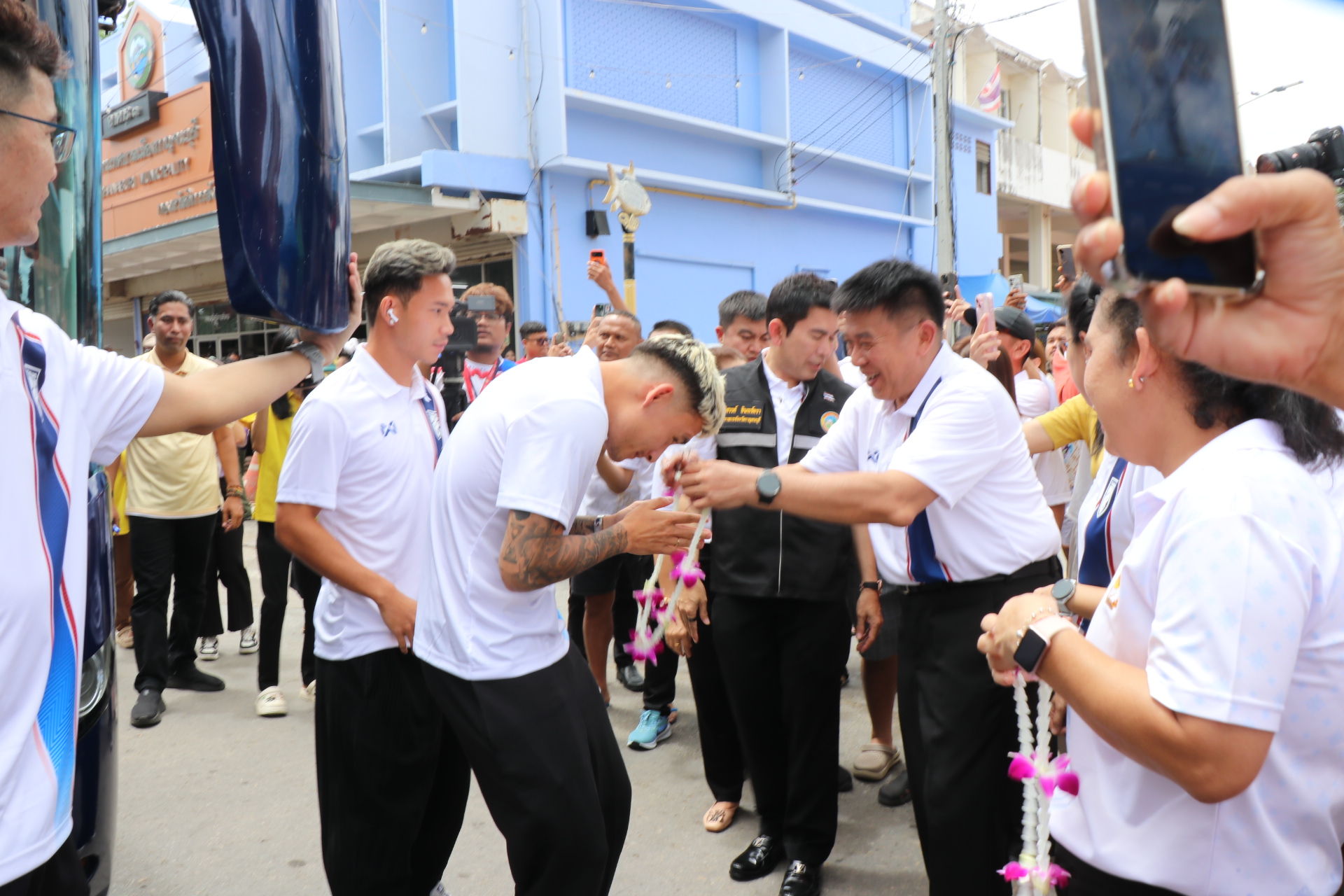 กาญจนบุรี นักฟุตบอลทีมชาติไทย เดินทางถึงจังหวัดกาญจนบุรีแล้ว เพื่อเตรียมสู้ศึก 𝗞𝗶𝗻𝗴’𝘀 𝗖𝘂𝗽 ครั้งที่ 51