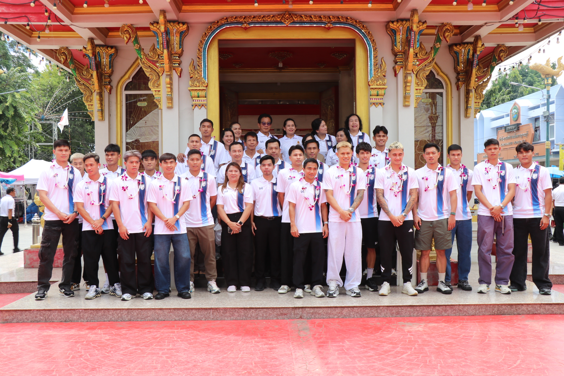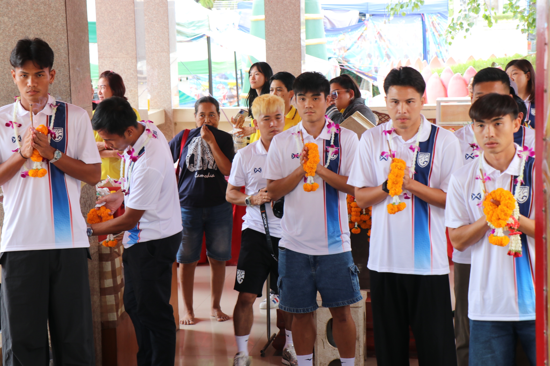 วันที่ 1 กันยายน 2568 ที่ ศาลหลักเมืองกาญจนบุรี นายอธิสรรค์ อินทร์ตรา ผู้ว่าราชการจังหวัดกาญจนบุรี พร้อมด้วยคณะรองผู้ว่าราชการจังหวัดกาญจนบุรี หัวหน้าส่วนราชการ เจ้าหน้าที่ และประชาชน ร่วมต้อนรับคณะผู้ฝึกสอนและนักกีฬาฟุตบอลทีมชาติไทย โดยคณะผู้ฝึกสอนและนักกีฬาฟุตบอลทีมชาติไทย สักการะศาลหลักเมือง เพื่อความเป็นศิริมงคล ก่อนเดินทางเข้าที่พัก