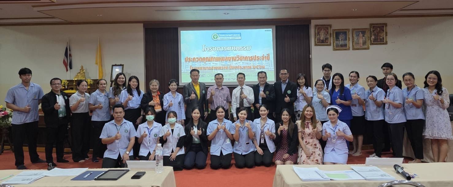 งานประกวด”มหกรรมประกวดคุณภาพผลงานวิชาการประจำปี 2025″ ในครั้งนี้ โรงพยาบาลสามพรานมีนโยบายสนับสนุนการดำเนินการตามยุทธศาสตร์ชาติในด้าน การพัฒนาและเสริมสร้างศักยภาพทรัพยากรมนุษย์ ภายใต้นโยบายและทิศทางการวิจัยด้านสุขภาพกระทรวงสาธารณสุข ประเด็นวิจัยด้านการส่งเสริมสุขภาพ ด้วยการสนับสนุนให้บริการ นำองค์ความรู้จากงานวิจัยมาพัฒนาคุณภาพงานประจำ, วิจัยจากงานประจำเป็นการสร้างความรู้ขึ้นมาจากการทำงานในชีวิตประจำวันและใช้เครื่องมืองมือสำคัญ ยังมีการดำเนินการในลักษณะเครือข่ายอย่างเป็นระบบกับโรงพยาบาลส่งเสริมสุขภาพตำบลอำเภอสามพราน