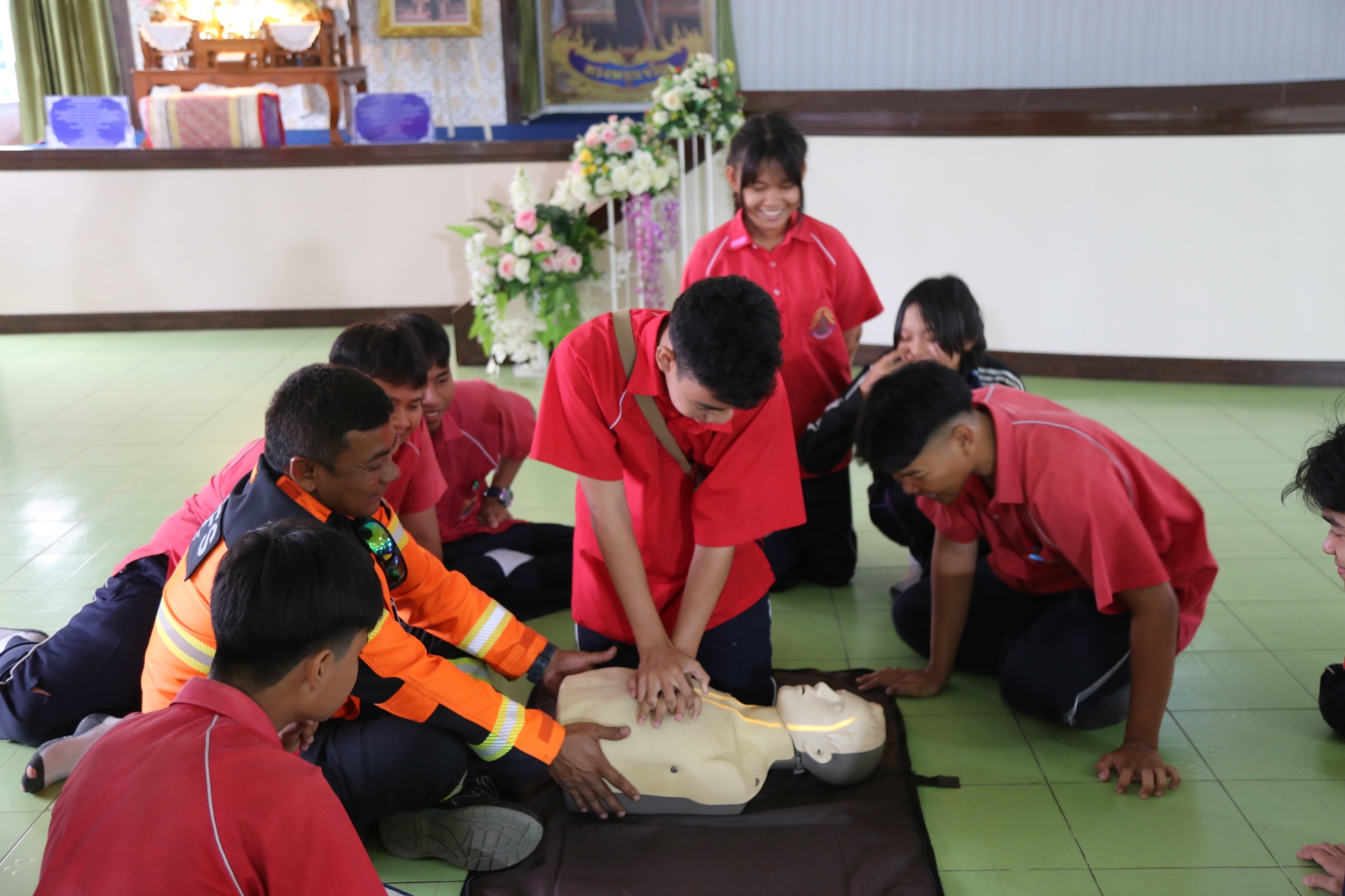 โดยมีวิทยากรผู้เชี่ยวชาญจากฝ่ายการแพทย์ รวมถึงฝ่ายดับเพลิงและกู้ภัย ร่วมเป็นวิทยากรและจัดกิจกรรม ให้แก่นักเรียนโรงเรียนวัดสังฆราชา ผู้นำชุมชนเขตลาดกระบัง รวมทั้งสิ้น 66 คน พร้อมกันนี้ ทสภ. ได้มอบ ตู้ยาสามัญ กระเป๋า พร้อมชุดอุปกรณ์ปฐมพยาบาล โดยมี น.ส.ณภัค เข็มแก้ว รองผู้อำนวยการโรงเรียนฯ เป็นผู้รับมอบ เพื่อเป็นการเตรียมความพร้อมด้านความปลอดภัยการรับมือและช่วยเหลือในกรณีเกิดเหตุฉุกเฉิน นอกจากนี้ ทสภ. ยังได้มอบเตียงสำหรับห้องปฐมพยาบาล ชุดปฐมพยาบาลพร้อมตู้จัดเก็บ ให้แก่ชุมชน ในเขตลาดกระบัง จำนวน 3 ชุมชน ได้แก่ชุมชนวัดสังฆราชา ชุมชนเทอดศาสนา และชุมชนประชาทร อีกด้วย