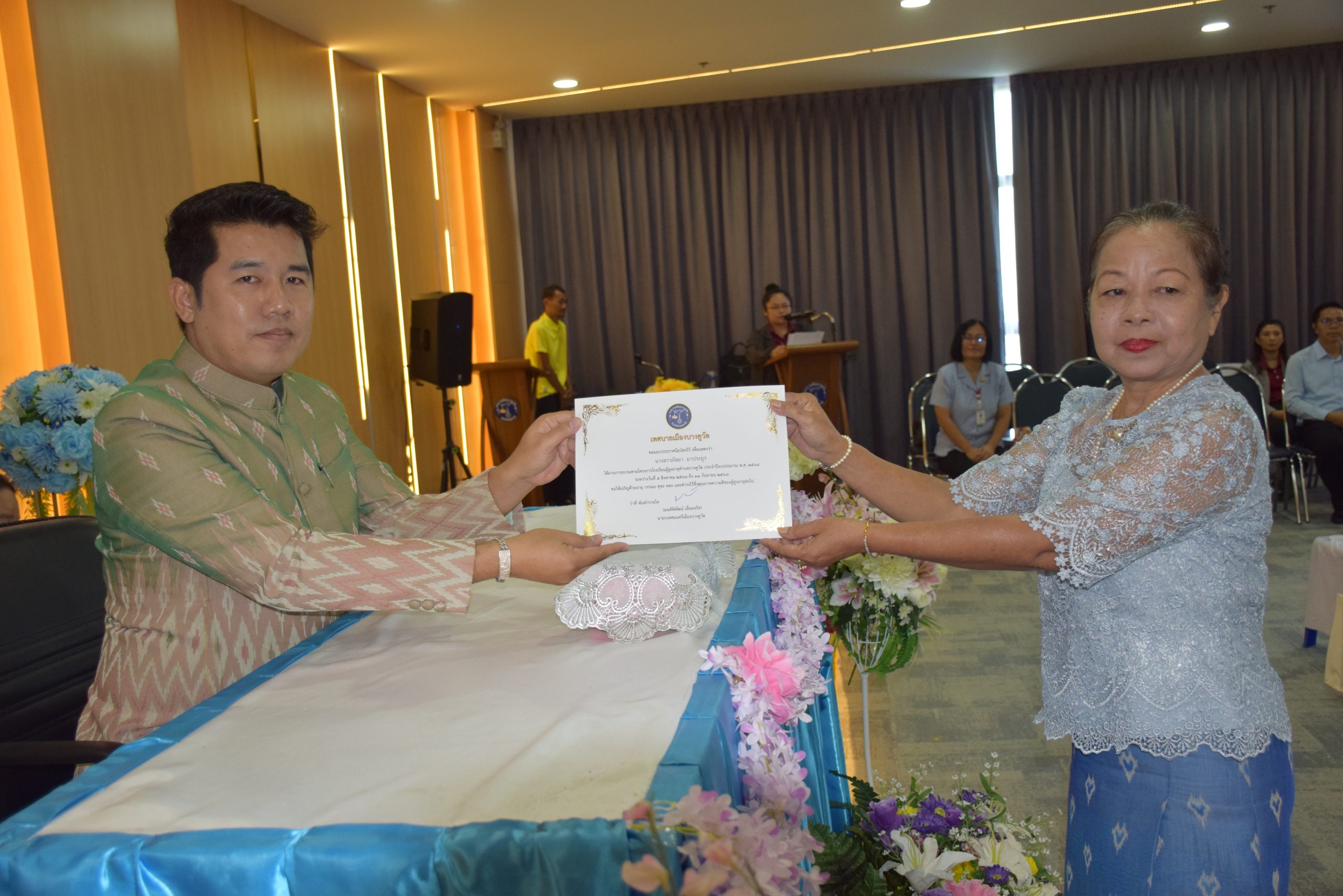 ดร.มด นายกเทศมนตรีเมืองบางคูวัด มอบประกาศนีย์บัตร แก่นักเรียนโรงเรียนผู้สูงอายุรุ่นที่ 3
