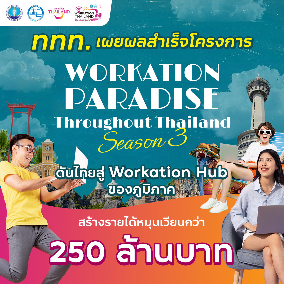 ททท. เผยผลสำเร็จโครงการ “Workation Paradise Throughout Thailand Season 3” ดันไทยสู่ Workation Hub ของภูมิภาค สร้างรายได้หมุนเวียนกว่า 250 ล้านบาท