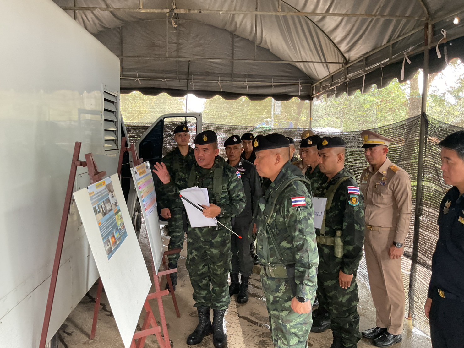 ต่อมา ผบ.ฉก.ลาดหญ้า เดินททางไปตรวจจุดตรวจร่วมน้ำเกริ๊ก รับฟังผลการปฏิบัติงานและตรวจการใช้รถ X-Ray (ZBV) สำหรับสแกนยานพาหนะเพื่อตรวจจับยาเสพติด สิ่งผิดกฎหมาย และแรงงานผิดกฎหมาย รถ X-Ray มีประสิทธิภาพตรวจได้ในระยะไม่เกิน 5 เมตร และความเร็วไม่เกิน 10 กม./ชม. โดยเมื่อวันที่ 17 ก.ย. ที่ผ่านมา สามารถตรวจจับบุหรี่ลักลอบนำเข้า 9 หีบ (90 ซอง) ได้สำเร็จ