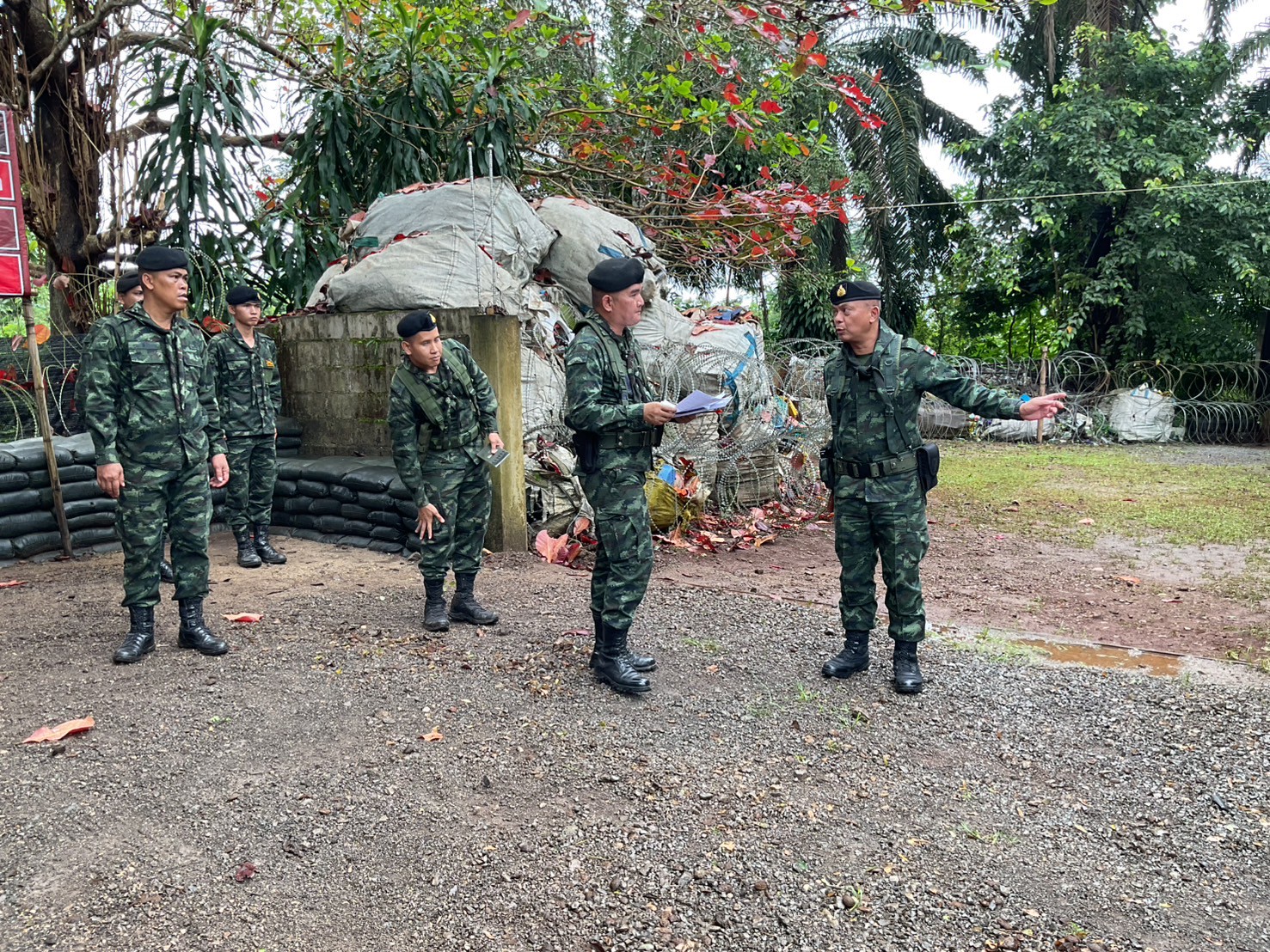 วันที่ 23 กันยายน 2568 พันเอก พรรณศักย์ เพรียวพานิช ผู้บังคับการกรมทหารราบที่ 29 ในฐานะผู้บังคับหน่วยเฉพาะกิจลาดหญ้า กองกำลังสุรสีห์ พร้อมด้วย พันเอก ปิยะเณศร์ ภัทรศาศวัตวงษ์ รองผู้บังคับหน่วยเฉพาะกิจลาดหญ้า กองกำลังสุรสีห์ ลงพื้นที่ตรวจความพร้อมตามแผนการตรวจเยี่ยมของ ผู้บัญชาการศูนย์ปฏิบัติการกองทัพภาคที่ 1. พื้นที่ชายแดนไทย-เมียน-มา ด่านพระเจดีย์สามองค์ อำเภอสังขละบุรี จังหวัดกาญจนบุรี บริเวณเนินตรวจการณ์(เขากลอนโด) รับฟังการบรรยายสรุป/ตรวจภูมิประเทศ