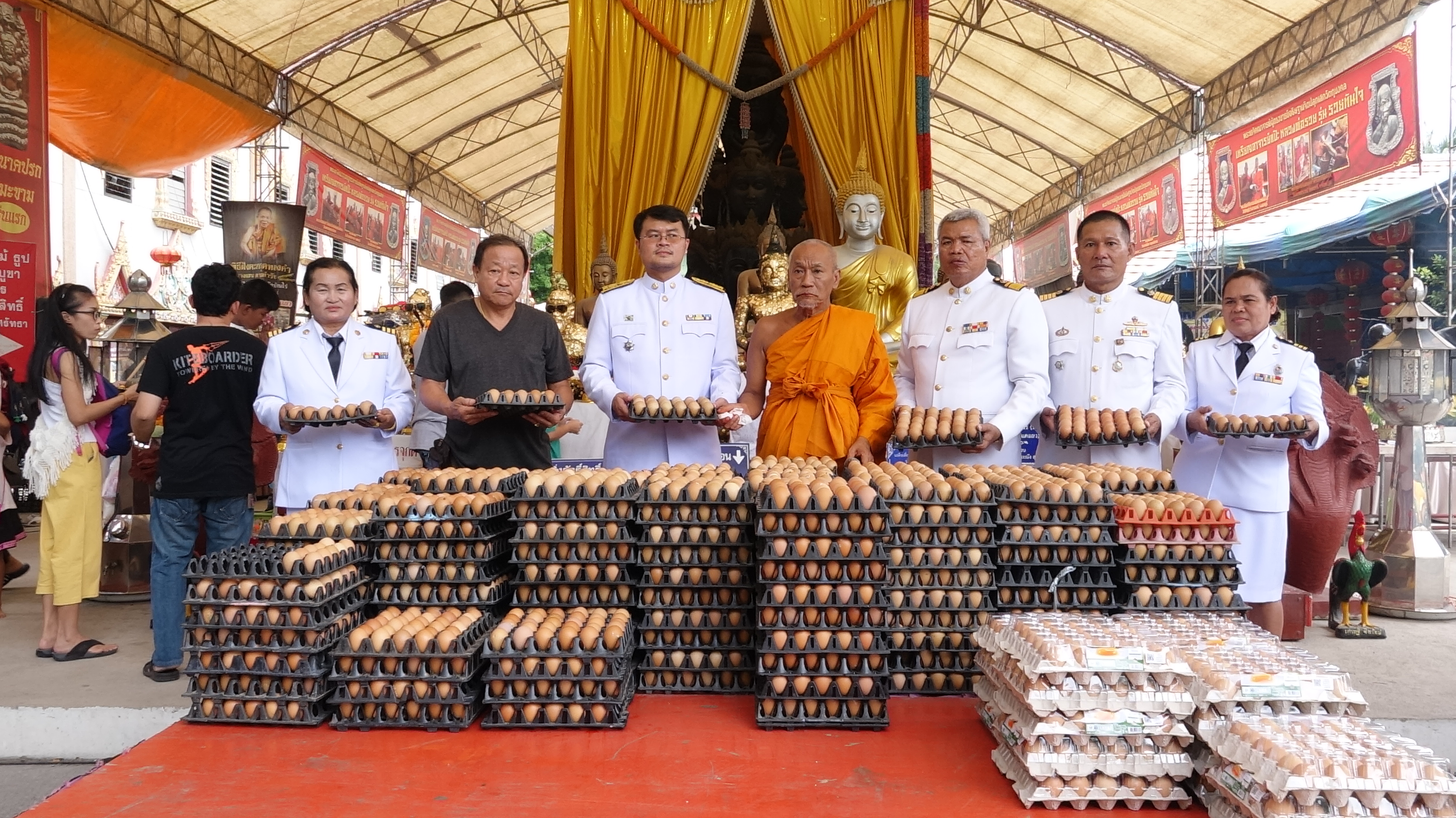 วัดเกจิดังลุ่มน้ำนครชัยศรีแจกข้าสารและไข่ไก่เนื่องในวันเฉลิมพระชนมพรรษาสมเด็จพระนางเจ้าฯพระบรมราชินี