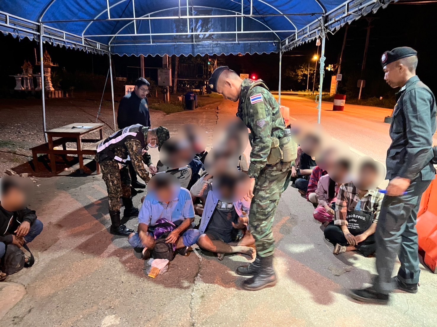 จากการซักถามผ่านล่าม ทราบว่า บุคคลต่างด้าวผิดกฎหมายทั้งหมด เดินทางมาจาก จ.ย่างกุ้ง และ จ.มัณฑะเลย์ ประเทศเมียนมา ลักลอบเข้ามาตามช่องทางธรรมชาติ บ้านพระเจดีย์สามองค์ อ.สังขละบุรี หลังจากนั้นใช้เส้นทางธรรมชาติทั้งทางบกและทางน้ำ เพื่อหลบเลี่ยงจุดตรวจของเจ้าหน้าที่ฝ่ายความมั่นคงเข้าสู่พื้นที่ตอนใน โดยทั้งหมดสารภาพว่าต้องการลักลอบหลบหนีเข้าไปทำงานยัง จ.สมุทรสาคร จ.ชลบุรี และ จ.ฉะเชิงเทรา ซึ่งจะจ่ายค่าจ้างให้กับนายหน้าที่จัดหาแรงงานให้กับสถานที่ทำงานในพื้นที่ดังกล่าว จำนวนคนละ 12,000 – 20,000 บาท (จ่ายเมื่อถึงปลายทาง) แต่ถูกเจ้าหน้าที่จับกุมได้เสียก่อน