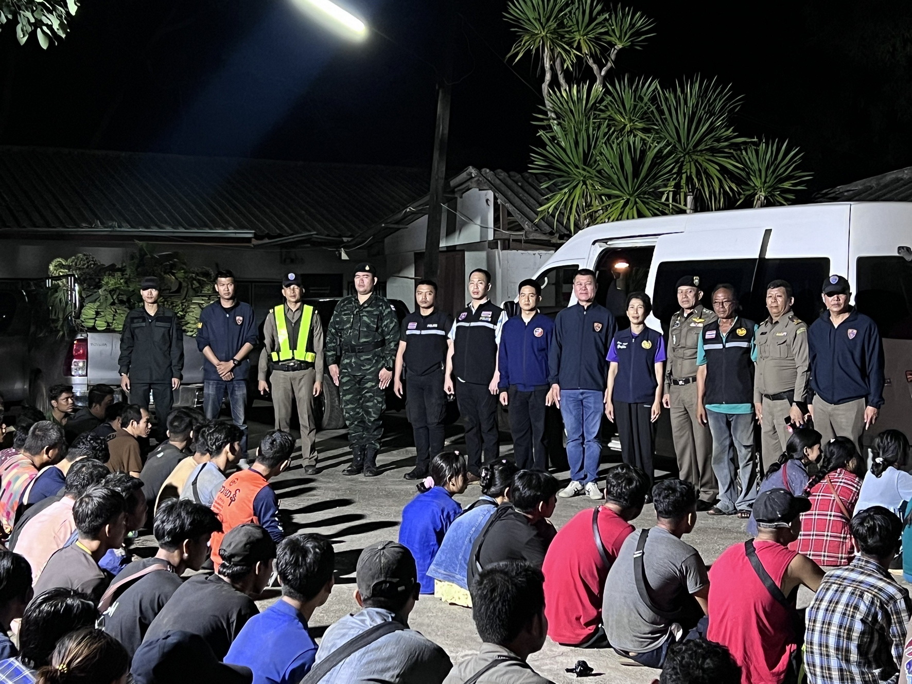 เมื่อเวลา 01.00 น.วันที่ 30 กันยายน 2568 นายอธิสรรค์ อินทร์ตรา ผู้ว่าราชการจังหวัดกาญจนบุรี พ.ต.อ.กรณ์ สมคะเณย์ ผกก.ตม.จว.กาญจนบุรี นายเนรมิต เหลืองอร่ามฟ้า นายอำเภอไทรโยค พ.ต.ท.ตฤณธวัช ปัญญาธร รอง ผกก.ตม.จว.กาญจนบุรี ว่าที่ พ.ต.ต.ธนพงษ์ พลายเพชร สว.ตม.จว.กาญจนบุรี ได้รับแจ้งจากสายข่าวว่าจะมีขบวนการขนแรงงานต่างด้าวชาวเมียนมาเข้ามาในเขตพื้นที่อำเภอไทรโยคเป็นจำนวนมาก โดยการใช้รถยนต์ จำนวน 4 คันเป็นพาหนะ หลังจากได้รับแจ้งจึงร่วมกันวางแผนติดตามจับกุม ด้วยการ ให้เจ้าหน้าที่ ตม.กาญจนบุรี เจ้าหน้าที่ กก.สส.ภ.จว.กาญจนบุรี เจ้าหน้าที่ ตร.สภ.ไทรโยค เจ้าหน้าที่ทหารหน่วยเฉพาะกิจลาดหญ้า กกล.สุรสีห์ เจ้าหน้าที่ ตชด.136 และเจ้าหน้าที่ฝ่ายปกครอง อ.ไทรโยค