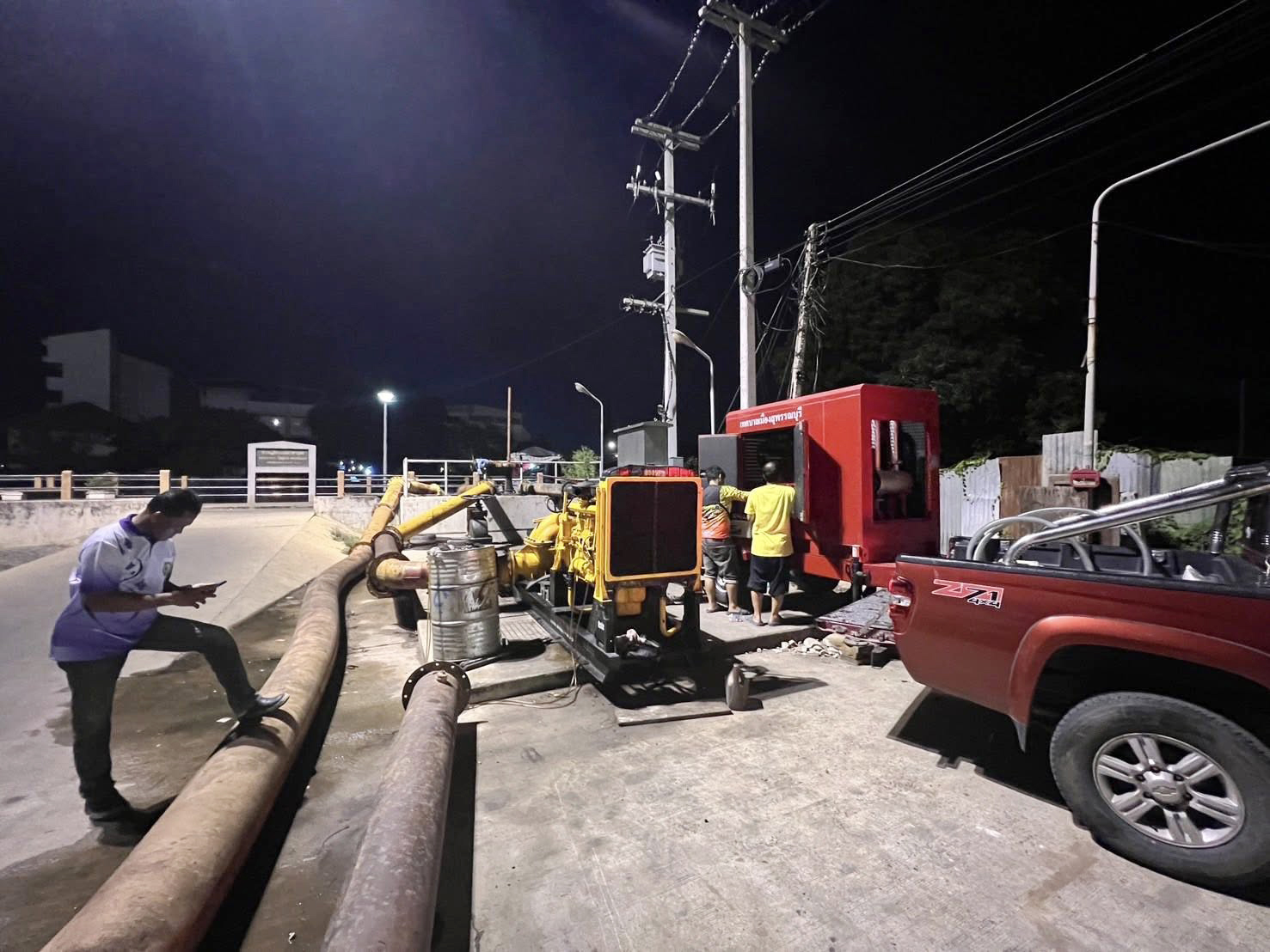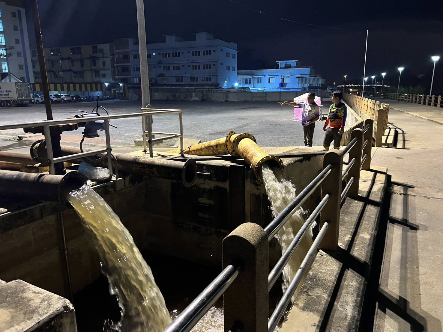 เทศบาลเมืองสุพรรณบุรีจึงได้ปิดประตูน้ำที่เชื่อมต่อกับแม่น้ำท่าจีนในทุกจุดและเริ่มเดินเครื่องสูบน้ำที่จุดโรงแรม เค เอ ที จุดถนนนางพิม จุดถนนแก้วกิริยา จุดถนนท่าสิบเบี้ย และจะเริ่มเดินเครื่องสูบน้ำในจุดบ้านยะมะรัชโช และจุดเสี่ยงอื่นที่ได้ตั้งเครื่องสูบน้ำไว้แล้วครับ