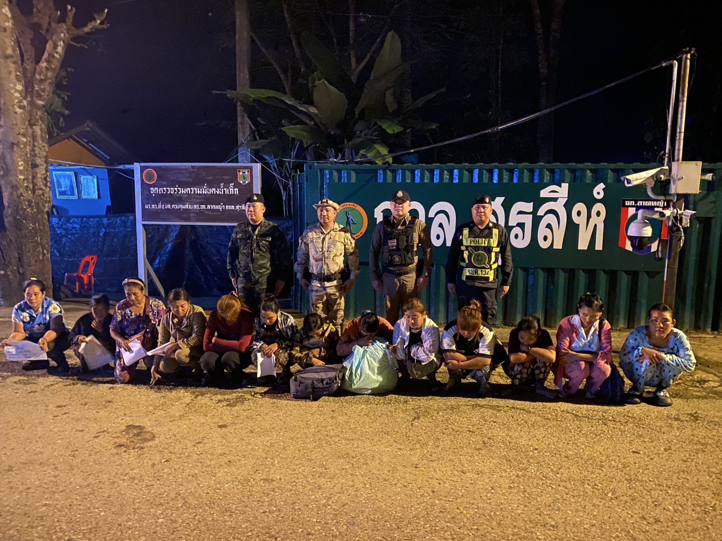 เมื่อเวลา 0.30 น วันที่ 2 ตุลาคม 2568 ทหารหน่วยเฉพาะกิจลาดหญ้า กองกำลังสุรสีห์ ร่วมกับ ร้อย.ตชด.134 , ฝ่ายปกครอง อ.สังขละบุรี และ สภ.สังขละบุรี ร่วมกันจับกุมผู้หลบหนีเข้าเมืองชาวเมียนมา 14 คน (หญิง13คนและผู้ติดตามหญิง1คน)บริเวณป่าด้านหลังสวนส้มโอแห่งหนึ่ง พื้นที่บ้านซองกาเลีย ม.8 ต.หนองลู อ.สังขละบุรี จังหวัดกาญจนบุรี ขณะที่ทั้งหมดเดินอ้อม จุดตรวจร่วมน้ำเกิ๊ก เพื่อจะไปรอรถยนต์ของขบวนการขนแรงงานต่างด้าวมารับเพื่อเดินทางต่อไปยังพื้นที่ชั้นในของอำเภอสังขละบุรี