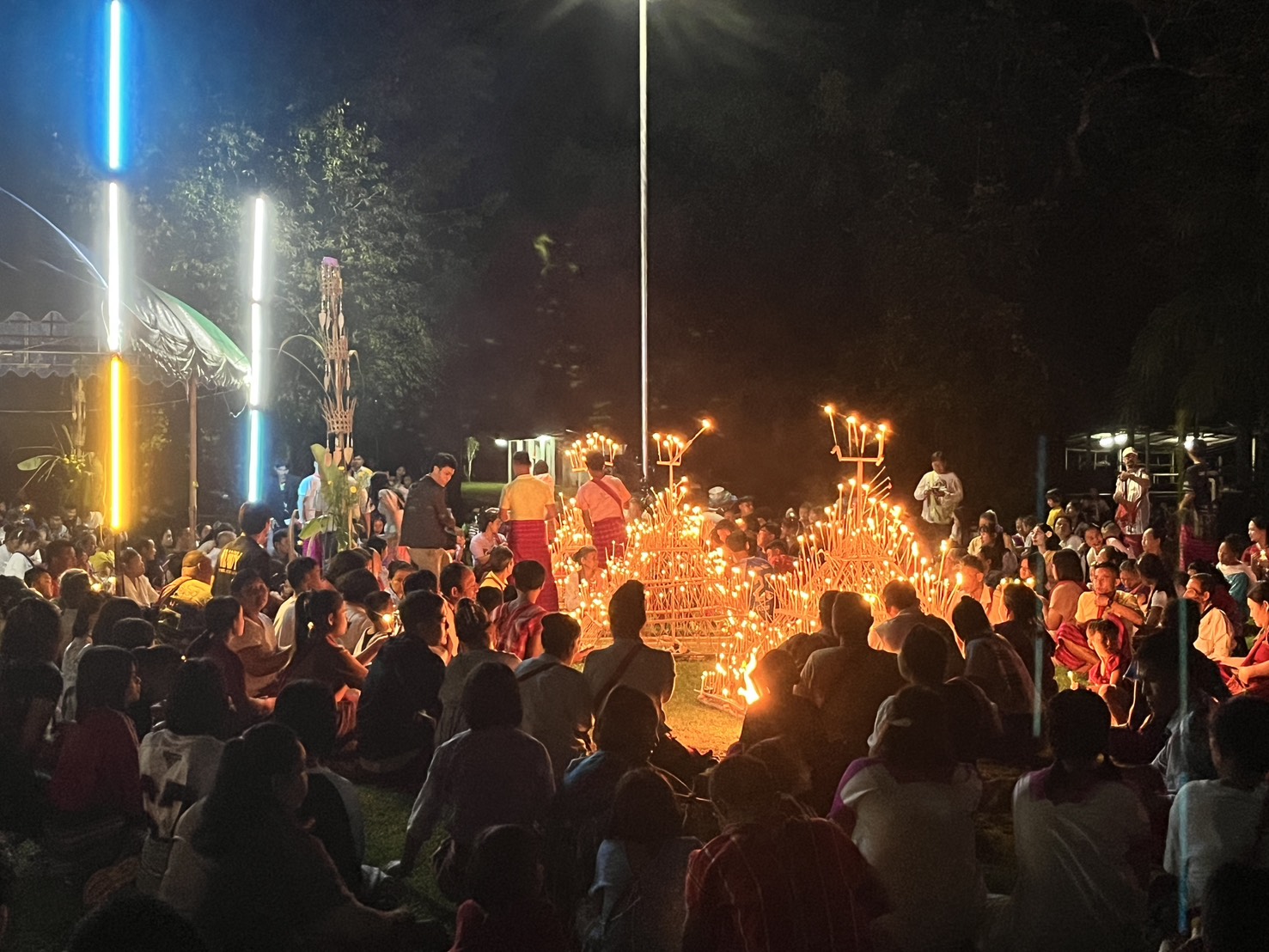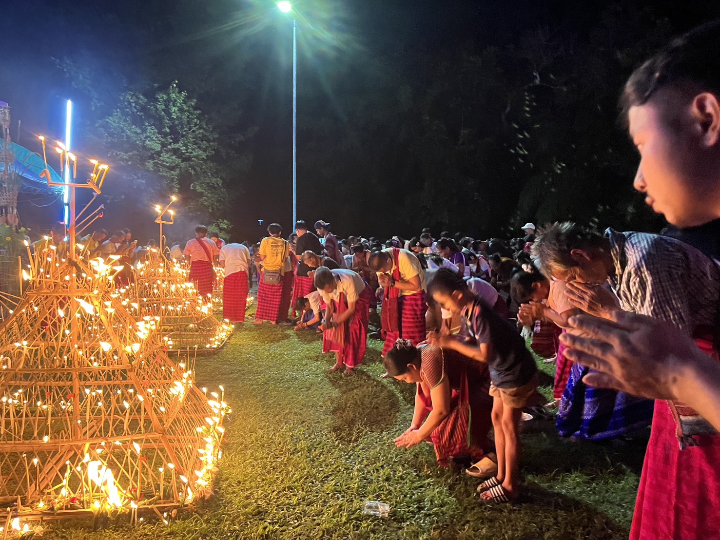 คืนนี้ซึ่งตรงกับวันแรมขึ้น 15 ค่ำ เดือน 11 และตรงกับคืนวันออกพรรษา เป็นค่ำคืนที่พระจันทร์เต็มดวง สว่างไปทั่วผืนป่า เป็นการบ่งบอกให้รู้ว่าคืนนี้ชาวไทยเชื้อสายกะเหรี่ยงในตำบลไล่โว่ จะประกอบพิธีไหว้เจดีย์ไฟ ซึ่งเป็นพิธีกรรมที่สำคัญหนึ่งในงานบุญออกพรรษา ที่จัดกันทุกหมู่บ้านในพื้นที่ตำบลไล่โว่