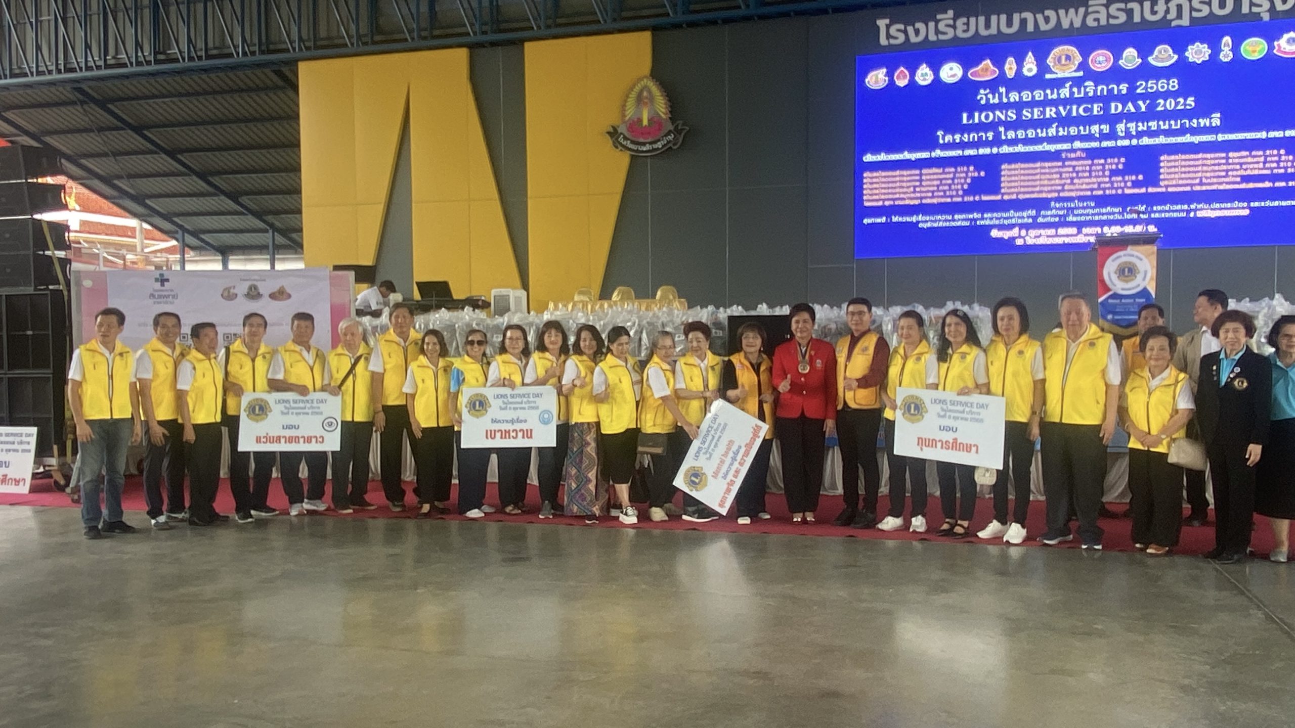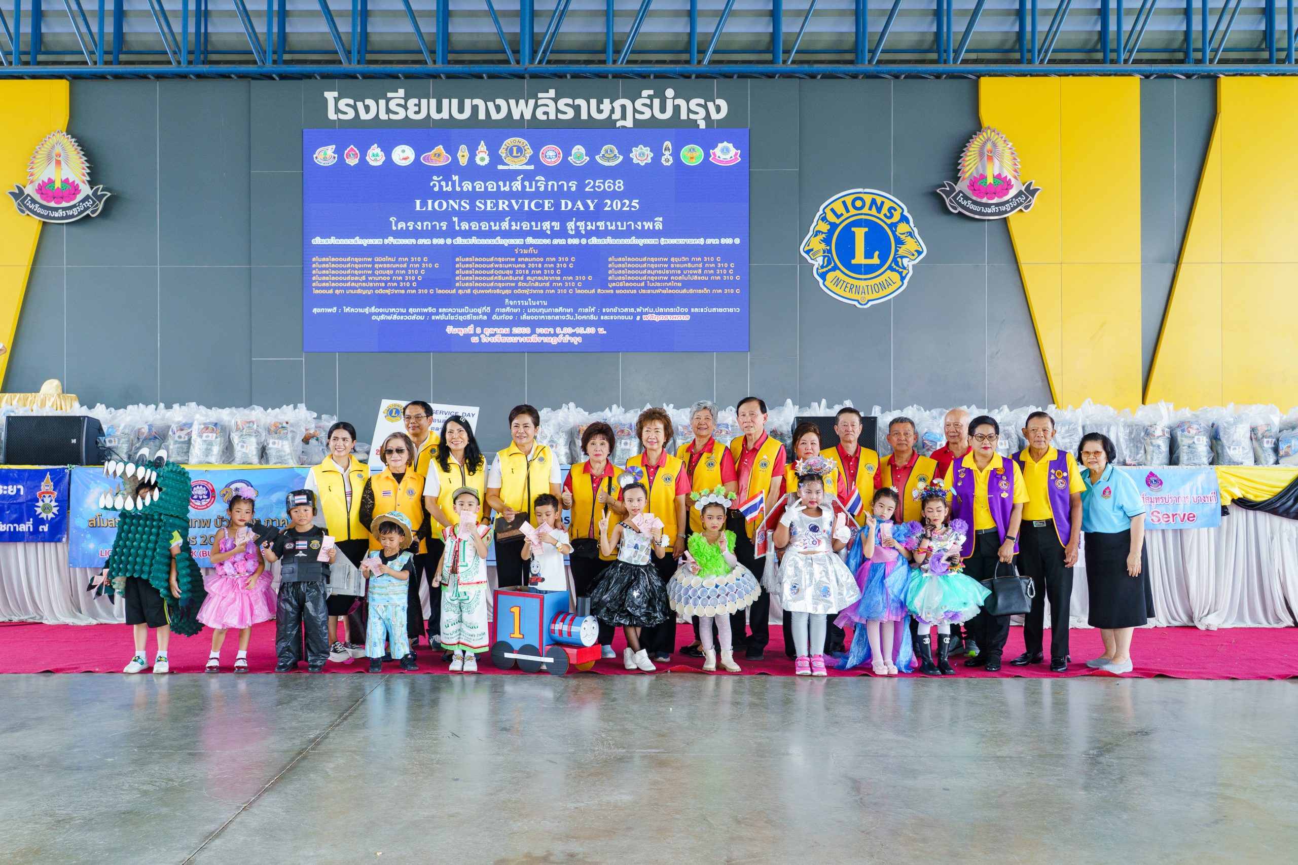 *****สำหรับกิจกรรมวัน LIONS SIRVICE DAY 2025 โครงการ ไลออนส์มอบสุข สู่ชุมชนบางพลี ในครั้งนี้ ประกอบไปด้วย 1. กิจกรรมให้ความรู้เรื่องเบาหวาน สุขภาพจิต และความเป็นอยู่ที่ดี แก่ประชาชนที่มาร่วมงาน 2. มอบทุนการศึกษาให้แก่นักเรียน จำนวน 100 ทุน ทุนละ 1,000 บาท การแจกถุงยังชีพข้าวสาร,ผ้าห่ม,ปลากระป้อง จำนวน 500 ชุด 3.การแจกแว่นสายตา ฟรี ให้แก่ผู้ที่มีปัญหาด้สนสายตา 4.กิจกรรมอนุรักษ์สิ่งแวดล้อมชม แฟชั่นโชว์ชุดรีไซเคิล และ 5.กิจกรรม เลี้ยงอาหารกลางวัน,โอศกรีม และแจกขนม ฟรี ทุกรายการ ให้แก่ผู้ที่มาร่วมงาน