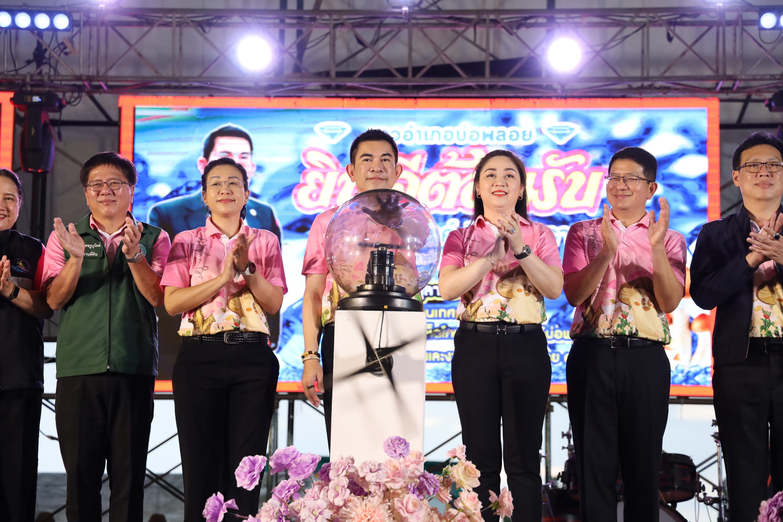 โดยมี นางสาวกิตติยา จึงรุ่งเจริญกิจ นายกเหล่ากาชาดจังหวัดกาญจนบุรี พร้อมด้วย นางพรรณวิภา ปิยัมปุตระ และนายสิทธิวีร์ วรรณพฤกษ์ รองผู้ว่าราชการจังหวัดกาญจนบุรี หัวหน้าส่วนราชการ นายอำเภอทั้ง13 อำเภอ องค์กรปกครองส่วนท้องถิ่น กลุ่มพลังมวลชน และประชาชนร่วมให้การต้อนรับอย่างอบอุ่น ภายในงานมีการจัดแสดงวัฒนธรรมท้องถิ่น การจำหน่ายสินค้า OTOP และผลิตภัณฑ์จากชุมชน นิทรรศการและบูธของส่วนราชการ รวมถึงกิจกรรมส่งเสริมการท่องเที่ยวและเศรษฐกิจฐานรากที่สะท้อนเอกลักษณ์และวิถีชีวิตของชาวบ่อพลอย พร้อมทั้งคอนเสิร์ตจากศิลปินดังมากมาย ซึ่งจัดขึ้นตั้งแต่วันที่ 10-20 ตุลาคม 2568 ณ บริเวณด้านหน้ามหาวิทยาลัยรามคำแหง สาขาวิทยบริการเฉลิมพระเกียรติ จังหวัดกาญจนบุรี ตำบลบ่อพลอย อำเภอบ่อพลอย จังหวัดกาญจนบุรี