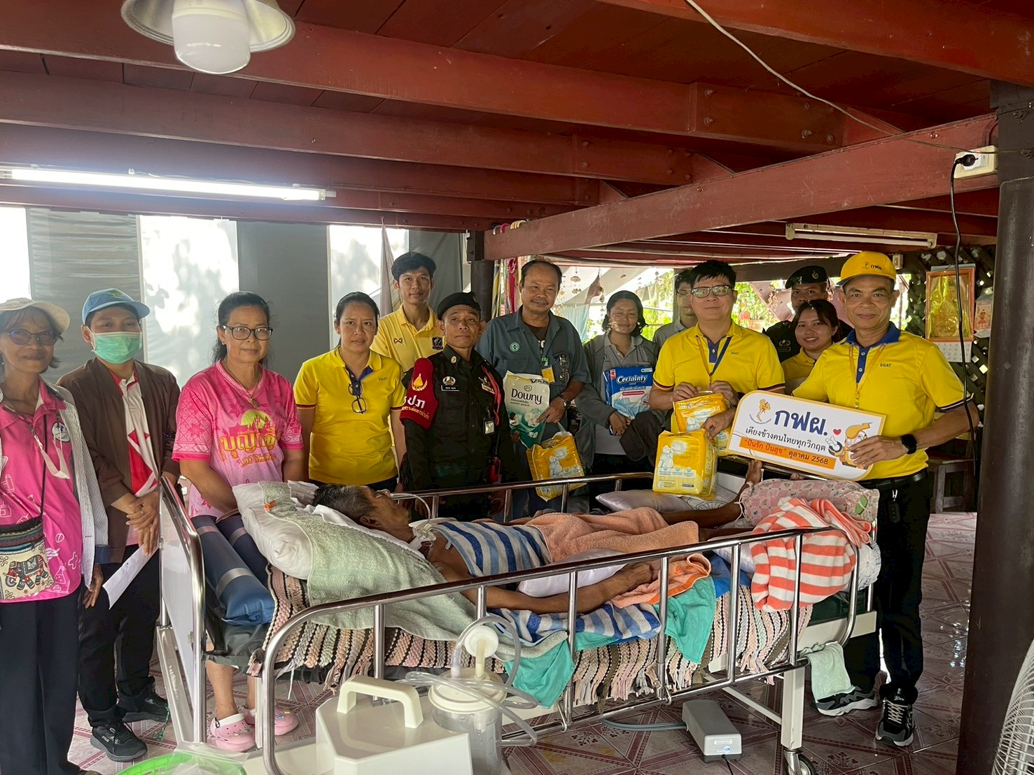 วันที่ 16 ตุลาคม 2568 กฟผ.โรงไฟฟ้าพระนครใต้ ได้ลงพื้นที่มอบของอุปโภคให้กับผู้ป่วยติดเตียงและผู้พิการในพื้นที่ตำบลบางหัวเสือ ในกิจกรรมปันรักปันสุขประจำเดือนตุลาคม 2568 โดยมีผู้ปฏิบัติงานที่เกิดในเดือนตุลาคมร่วมใจกันจัดหาสิ่งของจำเป็นและลงพื้นที่ไปเยี่ยมผู้ป่วยติดเตียงและผู้พิการในชุมชน โดยได้รับความร่วมมือจากโรงพยาบาลส่งเสริมสุขภาพตำบลบางหัวเสือ และทีมพี่น้อง อสม. ที่ได้นำคณะลงพื้นที่บ้านกลุ่มเป้าหมาย
