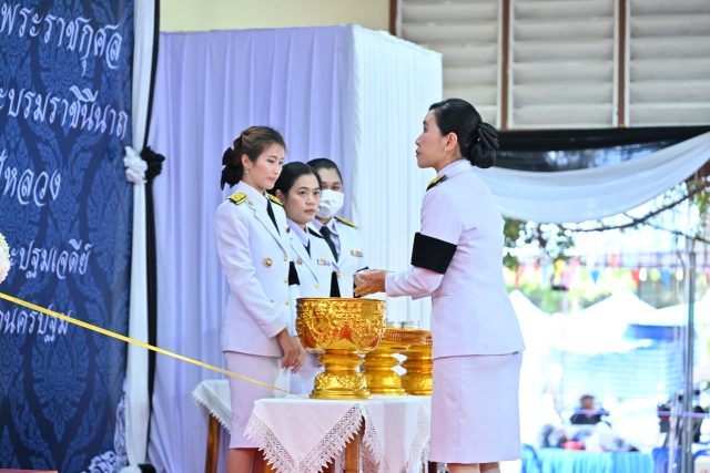 จังหวัดนครปฐม จัดพิธีถวายน้ำสรงพระบรมศพหน้าพระฉายาลักษณ์ สมเด็จพระนางเจ้าสิริกิติ์ พระบรมราชินีนาถ พระบรมราชชนนีพันปีหลวง