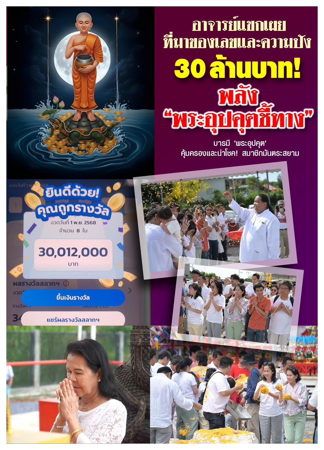 เมื่อวันที่1 พฤศจิกายน 2568 ลูกศิษย์ อาจารย์แขก มันตระสยาม รับเต็มๆรางวัลที่ 1ทีเดียว 5 (สามสิบล้านบาท) หลังผลออกรางวัลสลากกินแบ่งรัฐบาล งวดประจำวันเสาร์ที่1 พฤศจิกายน 2568รางวัลที่ 1 รางวัลละ 6,000,000 บาท