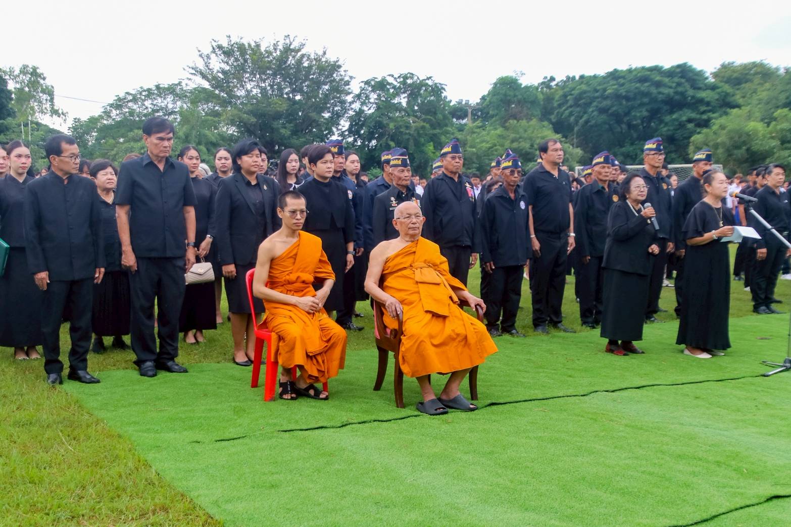 นายณัฐวุฒิ อนุโยธา (นายอำเภอป่าโมก) และ พระวชิรสิกขการ (ไพเราะ ฐิตสีโล ป.ธ.๔, ดร.) เจ้าอาวาสวัดสระแก้ว ได้ร่วมเป็นประธานในพิธี โดยมีผู้เข้าร่วมกว่า 1,000 คน ซึ่งประกอบด้วย นักเรียน ครู อาจารย์ กำนัน ผู้ใหญ่บ้าน นายทหารผ่านศึก และส่วนราชการต่างๆ โดยผู้เข้าร่วมพิธีทั้งหมดได้ร่วมกันยืนสงบนิ่งถวายความอาลัยเป็นเวลา 93 วินาที ด้วยความสำนึกในพระมหากรุณาธิคุณอันหาที่สุดมิได้