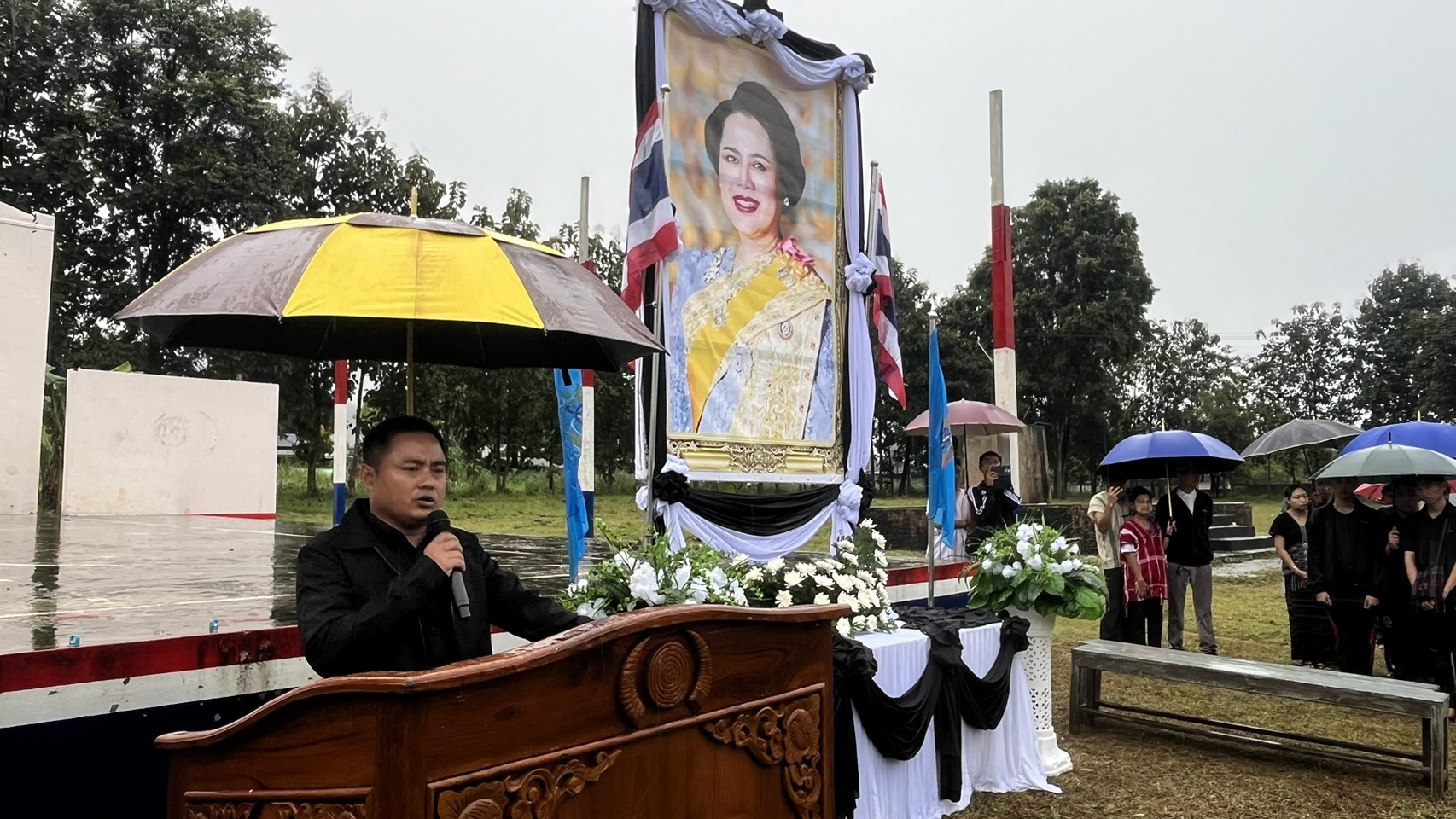กาญจนบุรี กองกำลังกะเหรี่ยงพุทธประชาธิปไตย(DKBA) จัดพิธีถวายความอาลัยต่อการสวรรคตของสมเด็จพระนางเจ้าสิริกิติ์พระบรมราชินีนาถ พระบรมราชชนนีพันปีหลวง