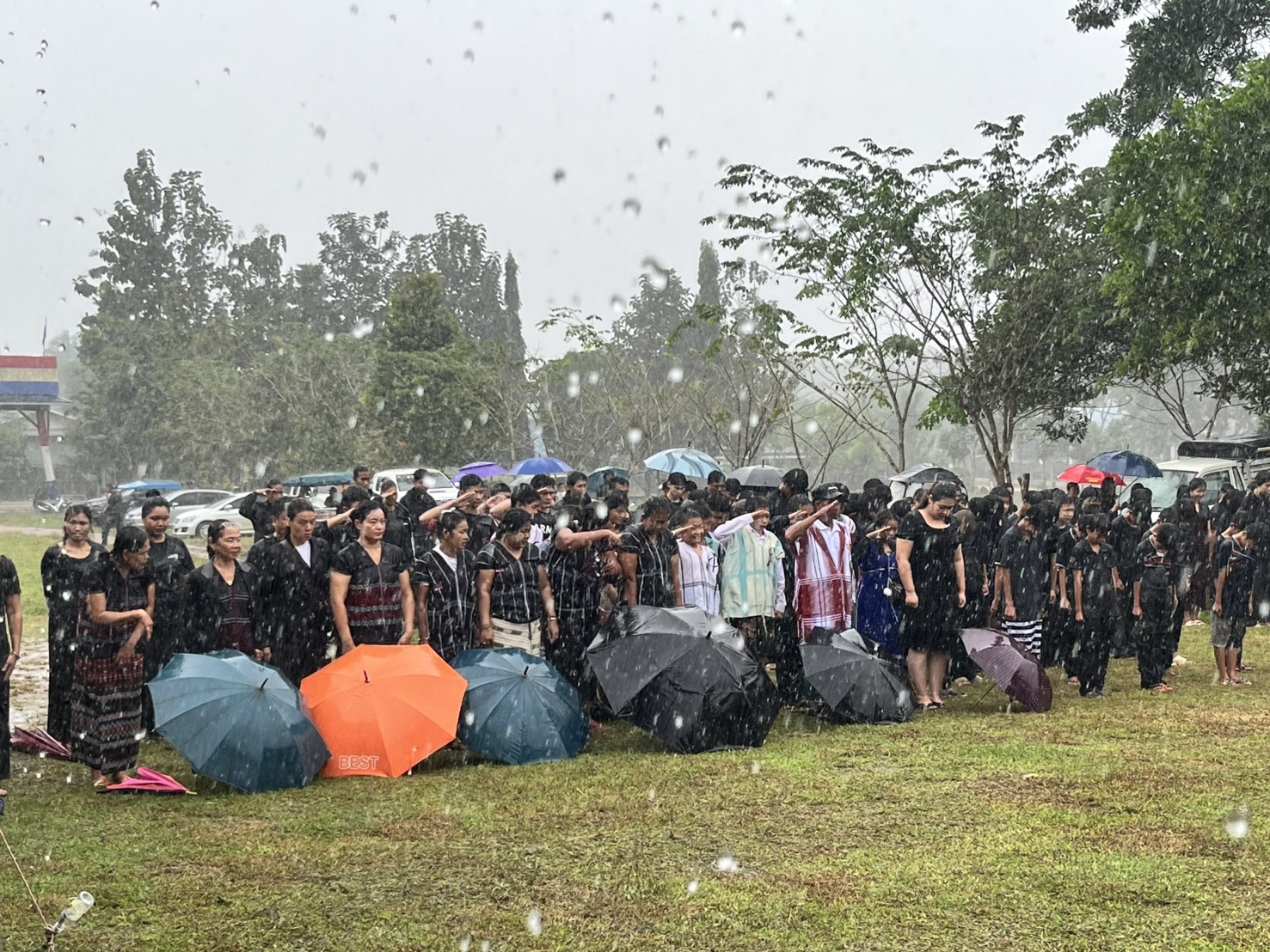 ที่สนามกีฬาบ้านกะยิ่นซุ อำเภอพญาตองซู จังหวัดจะอินเซ็กจี รัฐกะเหรี่ยง (ประเทศเมียนมา) ตรงข้ามด่านเจดีย์สามองค์ อำเภอสังขละบุรี จังหวัดกาญจนบุรี พ.อ.เอวัน ผบ.บก.ยว.ที่ ๒ กองพลน้อยที่2 กองกำลังกะเหรี่ยงพุทธประชาธิปไตย(DKBA) เป็นประธานในพิธีถวายความอาลัยต่อการเสด็จสวรรคตของสมเด็จพระนางเจ้าสิริกิติ์ พระบรมราชินีนาถ พระบรมราชชนนีพันปีหลวง กิจกรรมเริ่มด้วยทหารกองเกียรติยศการประกอบพิธีลดธงของDKBAลงครึ่งเสา พ.อ.เอวัน และตัวแทนส่วนราชการ ผู้นำชุมชน วางพวงมาลาหน้าพระบรมฉายาลักษณ์ เยาวชนขับร้องบทเพลง บรรเลงเพลงสรรเสริญพระบารมี ผู้ร่วมพิธีทำความเคารพพระบรมฉายาลักษณ์ ผู้แทนอ่านสาสน์ไว้อาลัย (ภาษาไทย และภาษากะเหรี่ยง)
