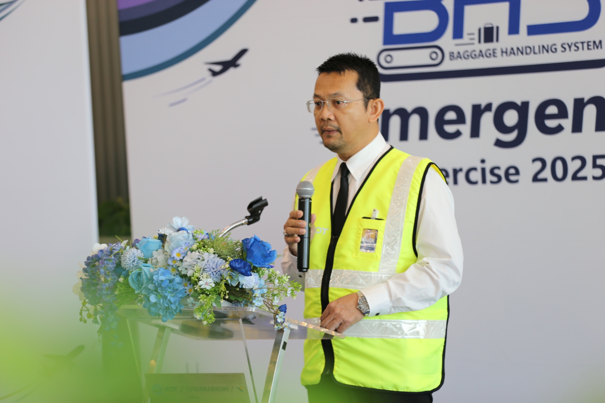 *****เมื่อเวลา เวลา 09.00 น.วันที่14 พฤศจิกายน 2568 เวลา 09.00 น. นายสืบพงษ์ คำโฮงค์ รองผู้อำนวยการท่าอากาศยานสุวรรณภูมิ (สายบำรุงรักษา) เป็นประธานเปิดการฝึกซ้อมแผนเผชิญเหตุของฝ่ายระบบลำเลียงกระเป๋าสัมภาระ ท่าอากาศยานสุวรรณภูมิ (Contingency Plan) ระดับ 3 แบบเต็มรูปแบบ (Full – Scale) ประจำปีงบประมาณ 2569 (Baggage Handling Emergency Exercise 2025 : BHEMEX-25) กรณีอพยพเจ้าหน้าที่เมื่อเกิดเหตุภัยพิบัติแผ่นดินไหว รวมถึงสถานการณ์เพิ่มเติมกรณีการเกิดรังสีรั่วไหลจากม่านกั้นรังสีของเครื่อง X – ray ชำรุด เพื่อให้พนักงาน ผู้ประกอบการในพื้นที่ปฏิบัติงาน ได้ร่วมฝึกซ้อมเพื่อสร้างความเข้าใจในการปฏิบัติงานด้านความปลอดภัยของระบบลำเลียงกระเป๋าสัมภาระให้เป็นไปตามมาตรฐาน ตลอดจนการฟื้นคืนระบบฯ ให้สามารถกลับมาเปิดบริการได้อย่างรวดเร็ว ปลอดภัย และมีประสิทธิภาพ โดยการฝึกซ้อมฯ มีนายอดิศักดิ์ ทูลสูงเนิน รองผู้อำนวยการท่าอากาศยาน (สายปฏิบัติการ 1) ผู้บริหารท่าอากาศยานสุวรรณภูมิ (ทสภ.) และหน่วยงานที่เกี่ยวข้อง ร่วมสังเกตการณ์ ณ ศูนย์อาหารฝั่งตะวันออก ชั้น 2 อาคารเทียบเครื่องบินรองหลังที่ 1 (SAT – 1)