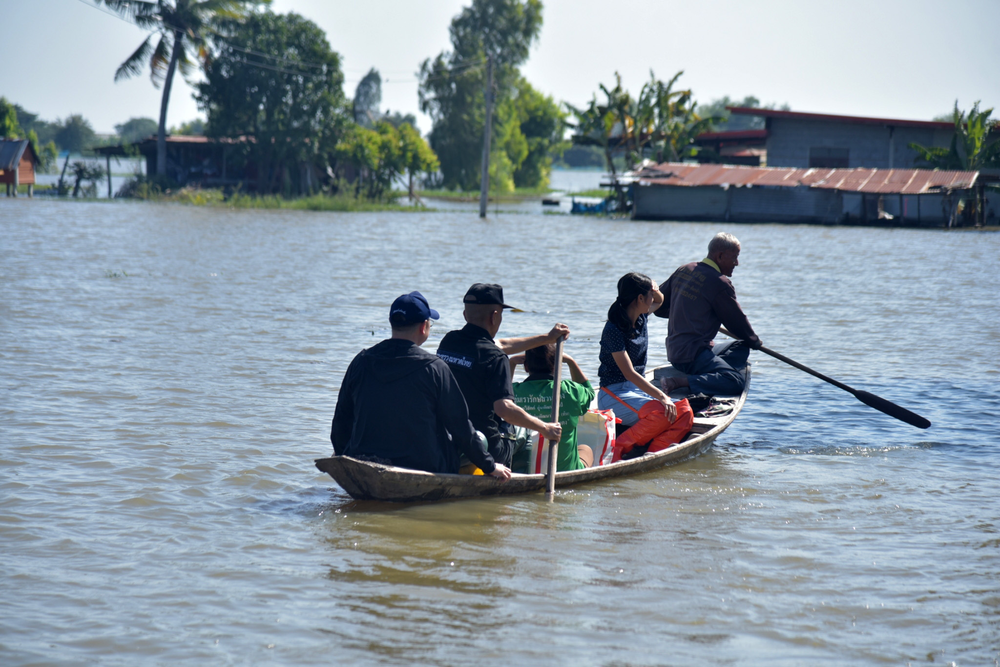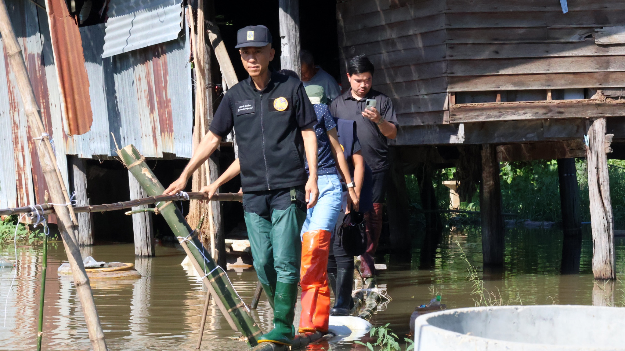 พ่อเมืองสุพรรณติดเครื่องนำข้าราชการลุยน้ำติดตามสถานการณ์อุทกภัยหาทางช่วยชาวบ้าน