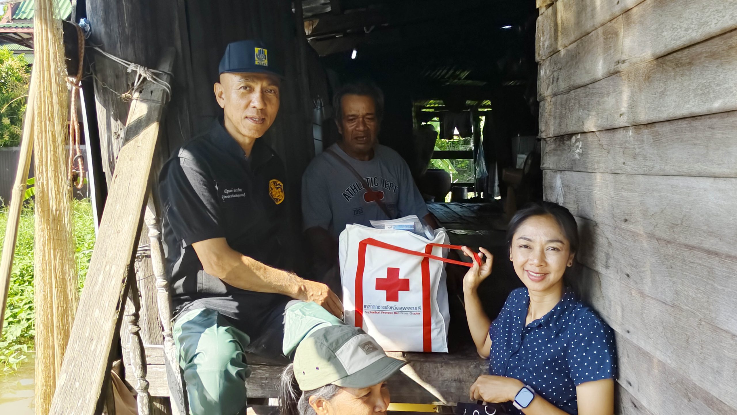 จากนั้น ผู้ว่าราชการจังหวัดสุพรรณบุรี พร้อมคณะ เดินทางต่อไปยังโรงพยาบาลส่งเสริมสุขภาพตำบล (รพ.สต.) หมู่ที่ 2 ตำบลสวนแตง อำเภอเมือง เพื่อมอบถุงยังชีพให้แก่ผู้ประสบอุทกภัย และกลุ่มเปราะบาง จำนวน 6 ครัวเรือน รวมทั้งกล่าวให้กำลังใจประชาชนในพื้นที่ ก่อนจะ เดินทางต่อไปที่ตำบลเจดีย์ อำเภออู่ทอง และเดินเท้าลุยน้ำเข้าเยี่ยมให้กำลังใจและมอบถุงยังชีพให้แก่ผู้ประสบอุทกภัย จำนวน 15 ครัวเรือน โดยมี นายอำเภออู่ทอง รองนายกเทศมนตรีตำบลเจดีย์ ผู้นำท้องที่ ผู้นำท้องถิ่น ร่วมให้การต้อนรับ