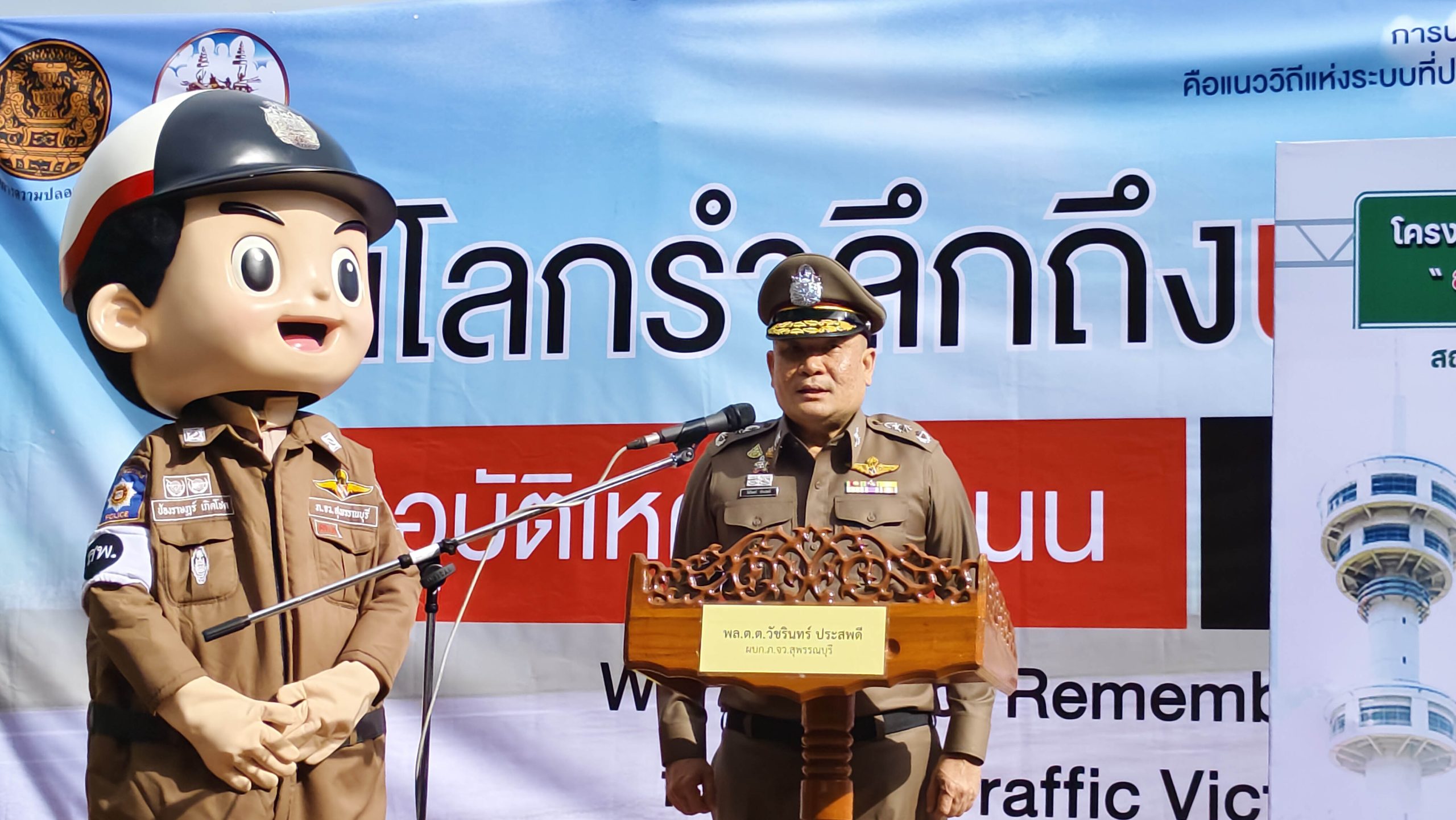 สุพรรณบุรี จัดงานวันโลกรำลึกผู้เสียชีวิตจากอุบัติเหตุทางถนนสร้างมีวินัยจราจร