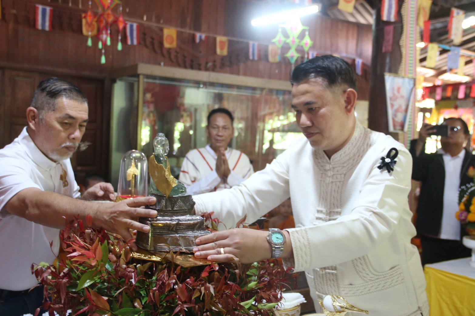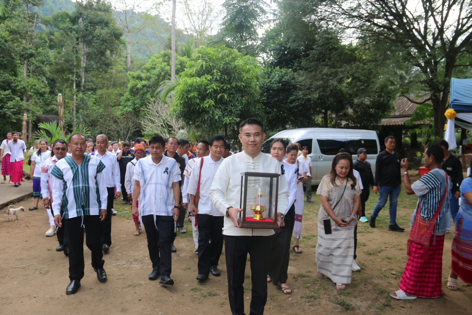 วันที่ 18 พฤศจิกายน 2568 ที่บริเวณหน้าที่ว่าการอำเภอสังขละบุรี จังหวัดกาญจนบุรี นายสุริยศักดิ์ เหมือนอ่วม นายอำเภอสังขละบุรี เป็นประธานในพิธีฉลองและแห่ “พระเกตุโมลีทองคำ” เพื่ออัญเชิญไปถวายแด่ พระพุทธรัตนสังขละบุรี ศรีสุวรรณ หรือ “พระแก้วขาว” พระคู่บ้านคู่เมืองของชาวสังขละบุรี