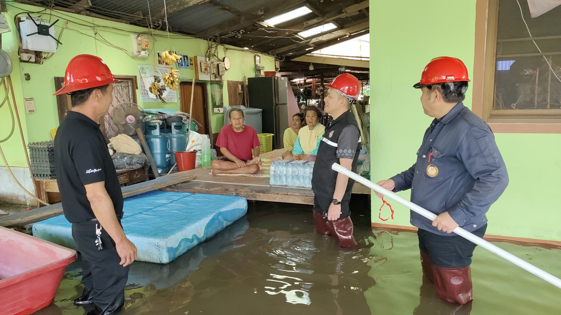 สุพรรณบุรี เจ้าหน้าที่การไฟฟ้านำกำลังลงพื้นที่น้ำท่วมขังตรวจสอบกระแสไฟรั่วป้องกันอันตราย