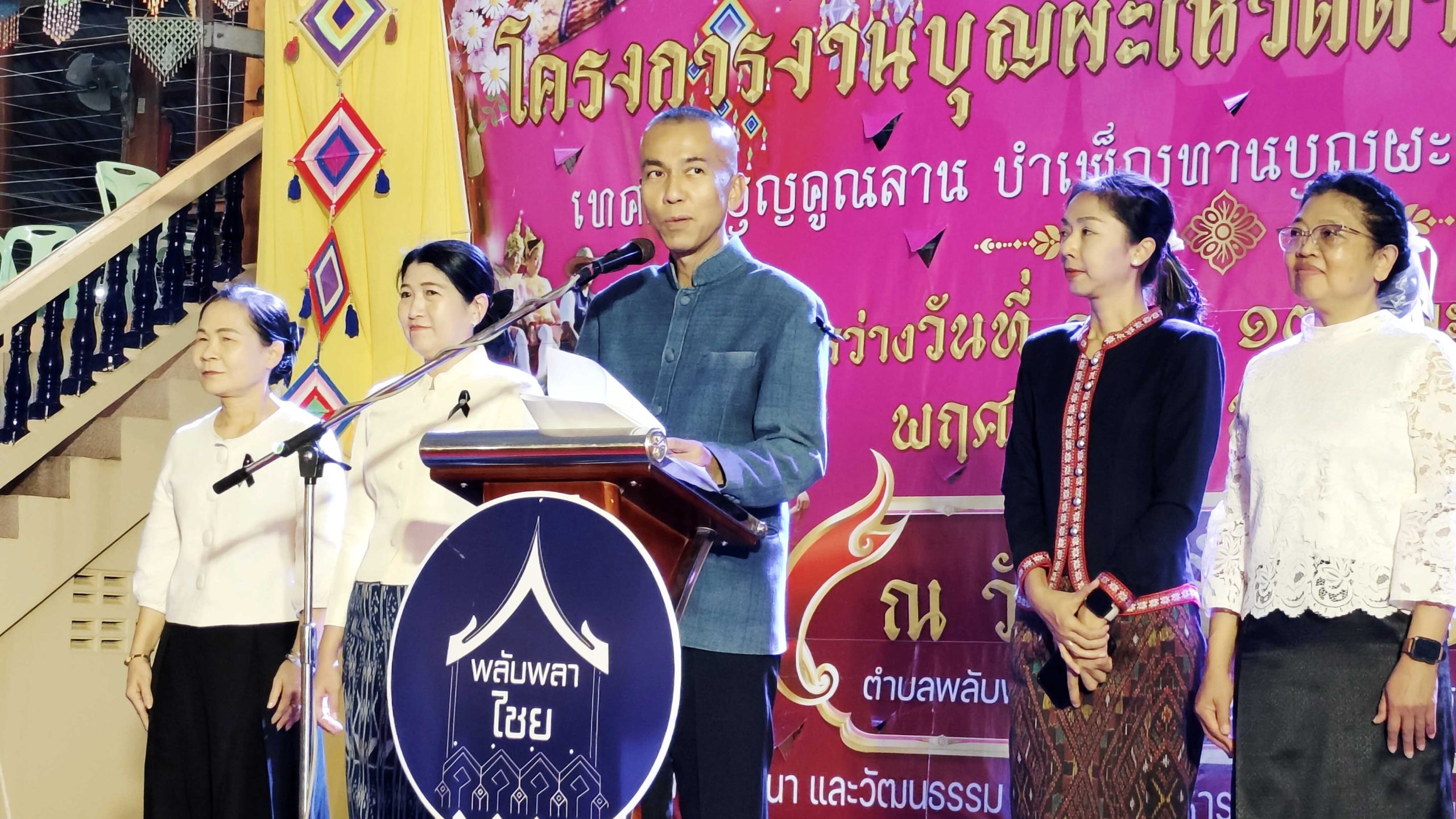 อบต.พลับพลาไชย ร่วมกับวัดโพธิ์ทองเจริญ กำนัน ผู้ใหญ่บ้าน คณะกรรมการ ชาวบ้านตำบลพลับพลาไชย สืบสานงานประเพณีตำบลพลับพลาไชย”เทศกาลบุญคูณลาน ปราสาทรวงข้าว บำเพ็ญทานบุญผะเหวด เทศกาลกาลทะเลทุงเฉลิมพระเกียรดิพระบาทสมเด็จพระเจ้าอยู่หัว และสมเด็จพระบรมราชินี”แห่งเดียวของภาคกลาง