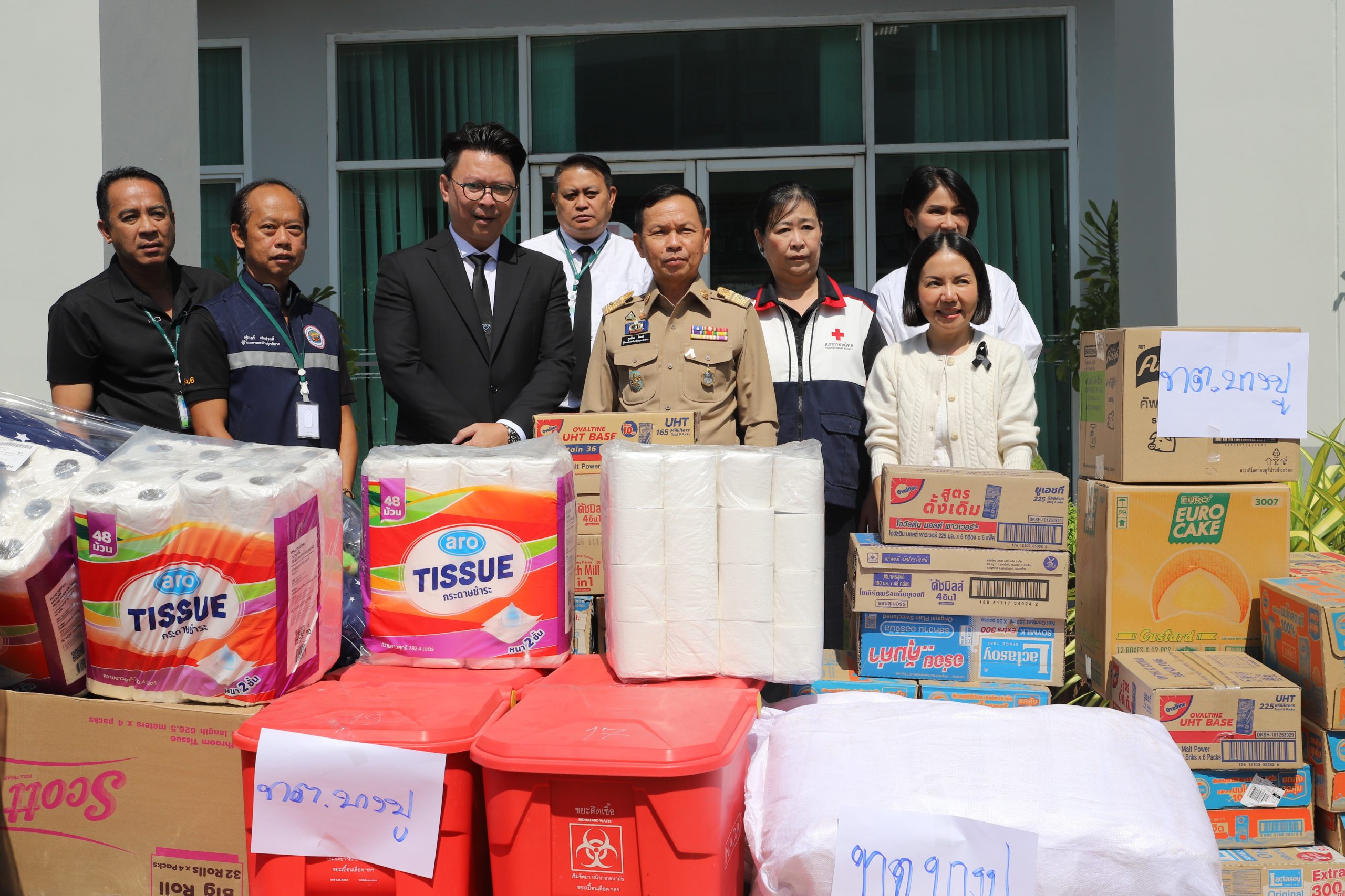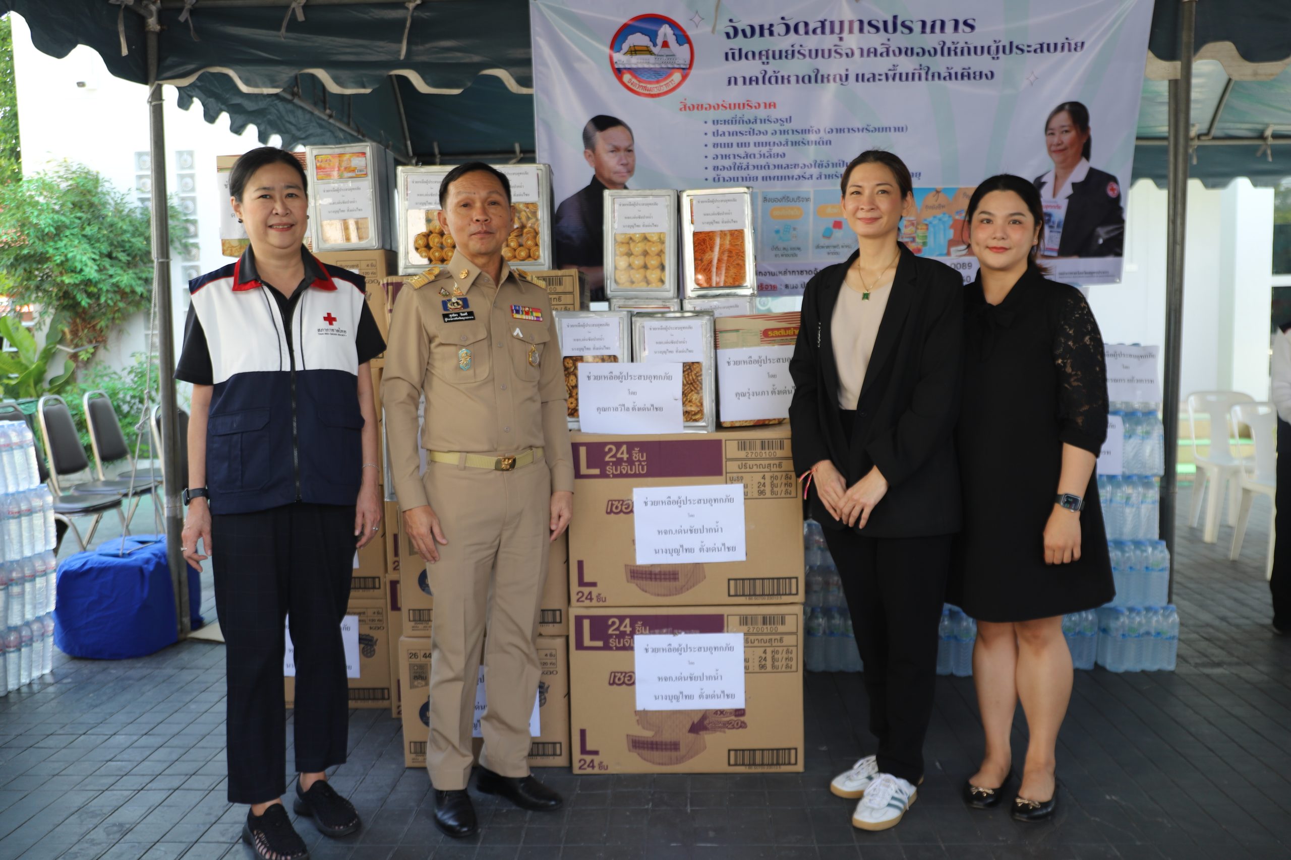 นอกจากนี้สำนักงานเหล่ากาชาดจังหวัดสมุทรปราการ โดยนางสาวอรวรรณ ชิณศรี นายกล่ากาชาดจังหวัดสมุทรปราการ ได้ตั้งจุดรับบริจาคเงินและสิ่งของเพื่อช่วยเหลือผู้ประสบอุทกภัยในจังหวัดภาคใต้ ณ สำนักงานเหล่ากาชาดจังหวัดสมุทรปราการ โดยมี หน่วยงานราชการ ผู้มีจิตศรัทธาร่วมบริจาคเงินและสิ่งของ อาทิ น้ำดื่ม บะหมี่กึ่งสำเร็จรูป ปลากระป๋อง อาหารพร้อมรับประทาน นม นมผงสำหรับเด็ก แพมเพอร์ส สำหรับเด็กและผู้ใหญ่