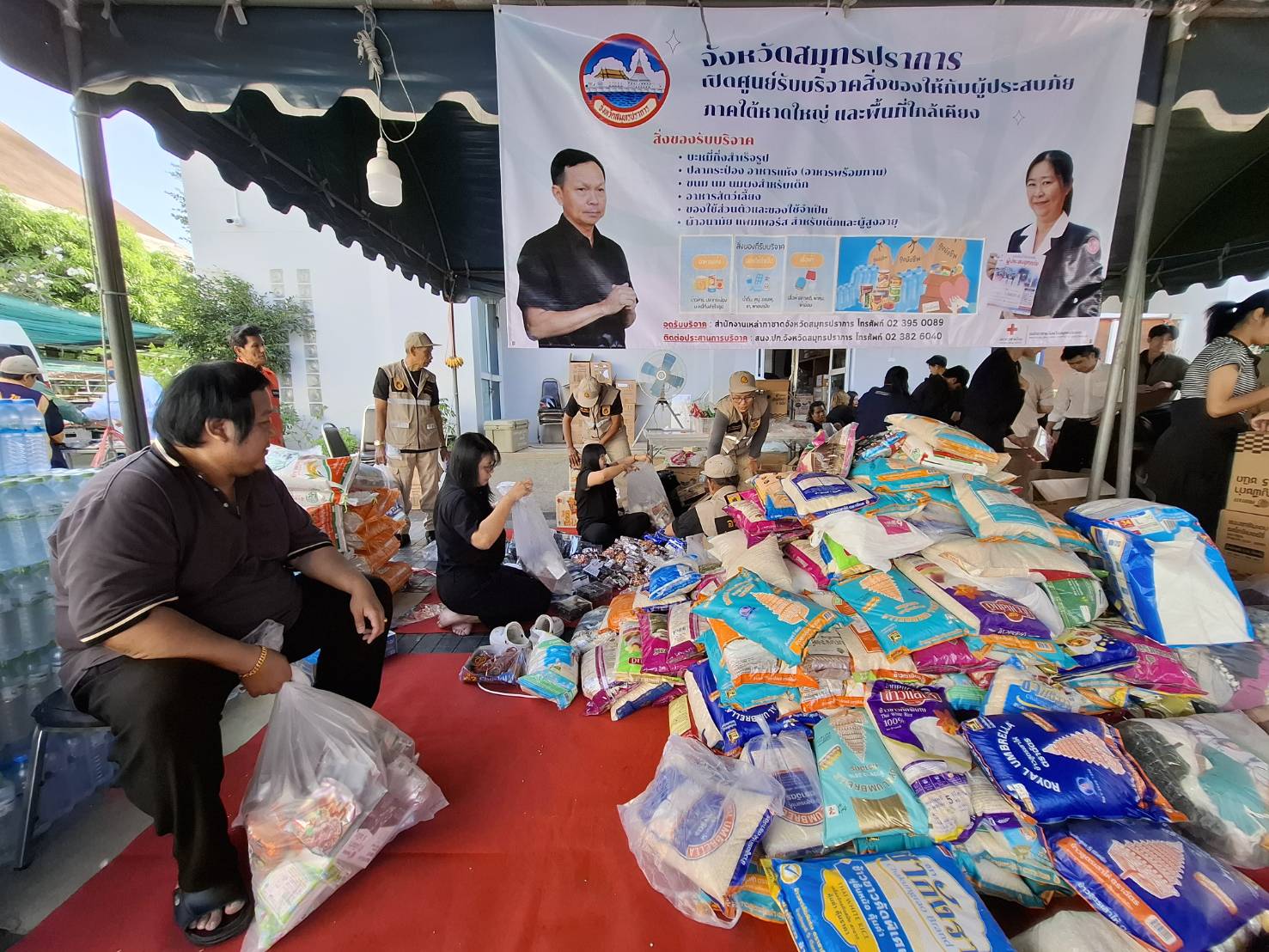 . ทั้งนี้ ยังคงมีหน่วยงานราชการ ภาคเอกชน ผู้มีจิตศรัทธาบริจาคเงินและสิ่งของ อาทิ น้ำดื่ม บะหมี่กึ่งสำเร็จรูป ปลากระป๋อง อาหารพร้อมรับประทาน นม นมผงสำหรับเด็ก แพมเพอร์ส สำหรับเด็กและผู้ใหญ่ ยารักษาโรค ผ่านสำนักงานเหล่ากาชาดจังหวัดสมุทรปราการอย่างต่อเนื่อง หลังจากเมื่อวานนี้ (27 พ.ย.68) สำนักงานเหล่ากาชาดจังหวัดสมุทรปราการ ได้ตั้งจุดรับบริจาคบริเวณสำนักงานเหล่ากาชาดจังหวัดสมุทรปราการ โดยมี ข้าราชการ เจ้าหน้าที่ จากหน่วยงานในจังหวัดสมุทรปราการ สมาชิกเหล่ากาชาดจังหวัดสมุทรปราการ สมาชิก อพปร.และจิตอาสา ร่วมกันบรรจุสิ่งของที่ได้รับบริจาคลงในถุงยังชีพ ก่อนจะนำไปมอบให้หน่วยงานในพื้นที่ ส่งต่อให้กับผู้ประสบอุทกภัย เพื่อเป็นการบรรเทาความเดือดร้อนในเบื้องต้นต่อไป