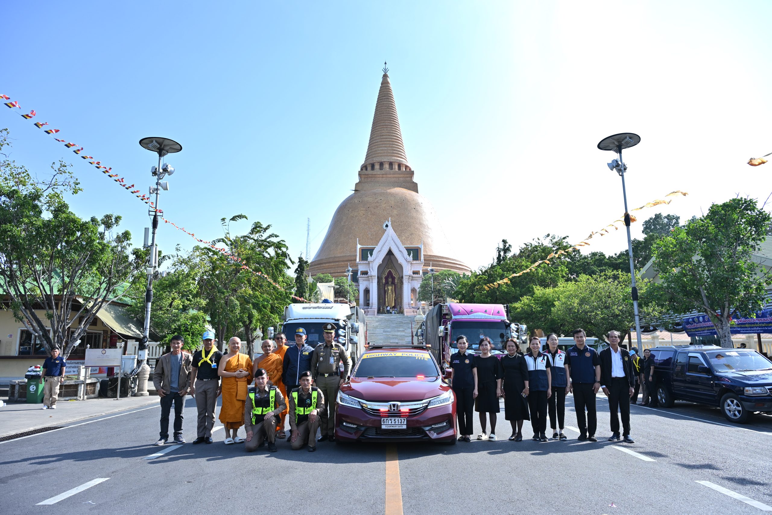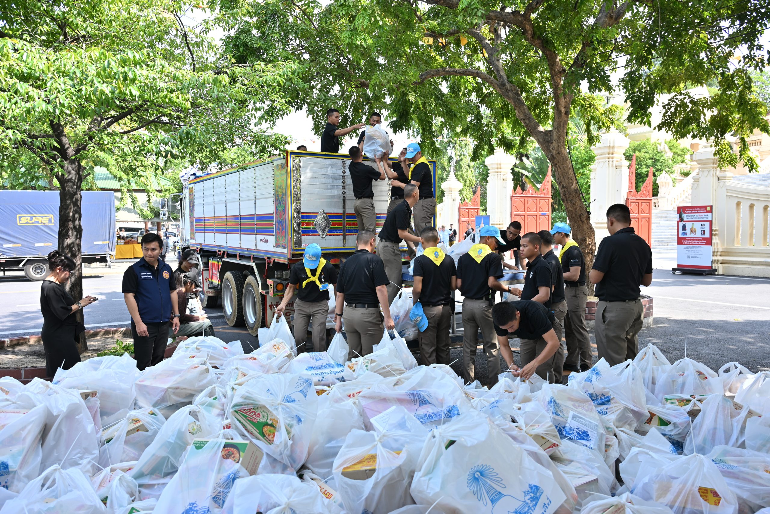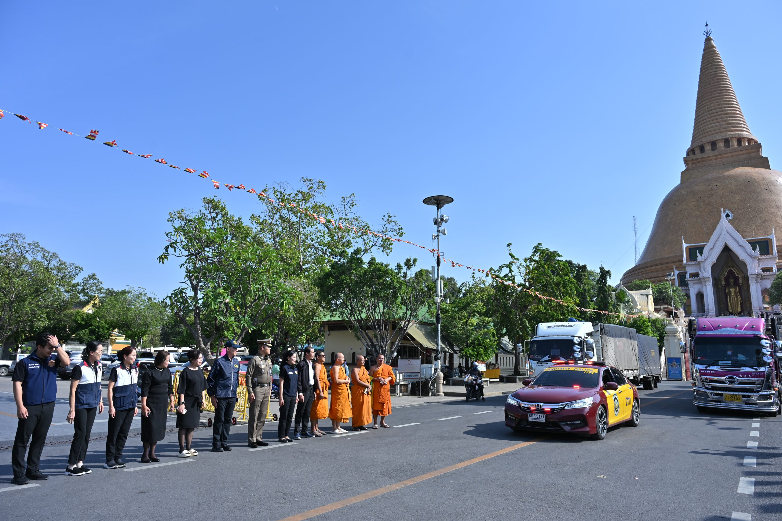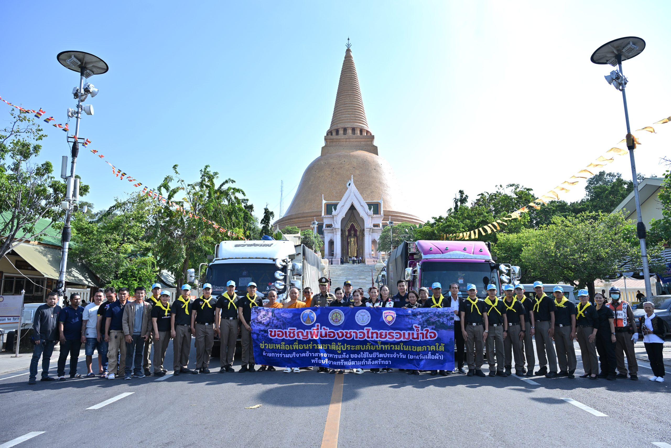 ซึ่งจังหวัดนครปฐมร่วมกับคณะสงฆ์ วัดพระปฐมเจดีย์ ราชวรมหาวิหาร หน่วยงานภาคีเครือข่าย ภาครัฐ ภาคเอกชน และประชาชนชาวนครปฐมรวมใจส่งมอบถุงยังชีพ จำนวน 2,210 ชุด ขึ้นรถบรรทุกธารน้ำใจชาวนครปฐม จำนวน 4 คัน ออกเดินทางวันที่ 27 พ.ย. 68 ปลายทาง 2 จุด ได้แก่ วัดน้ำน้อยนอก อ.หาดใหญ่ จ.สงขลา จำนวน 1,250 ชุด และวัดควนกาหลง อ.ควนกาหลง จ.สตูล จำนวน 960 ชุด