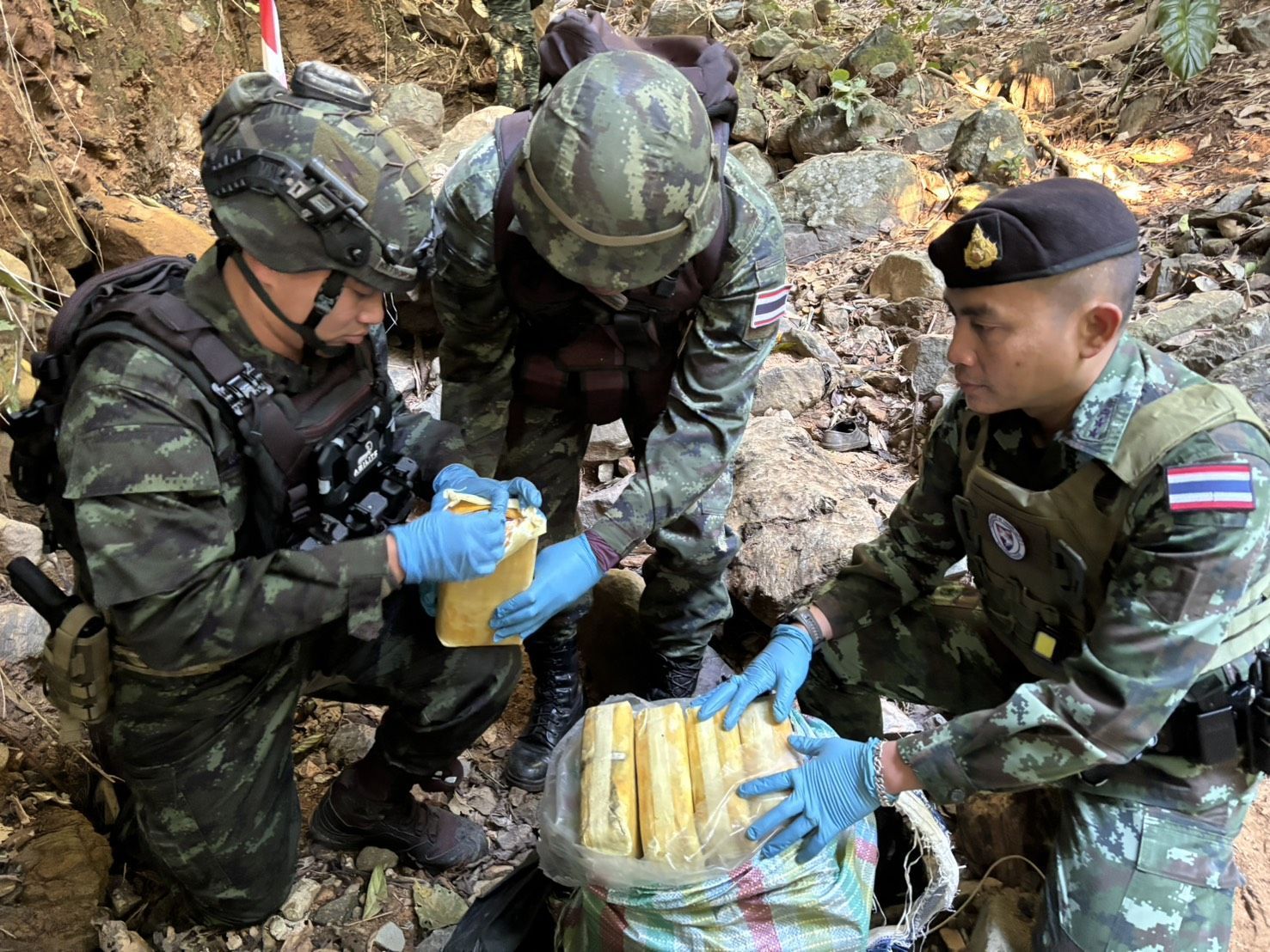 เมื่อวันที่ 29 พฤศจิกายน 2568 เวลา 19.00 นาฬิกา กองกำลังผาเมือง โดย กองร้อยทหารม้าที่ 2 กองบังคับการควบคุมผาแด่น หน่วยเฉพาะกิจทัพเจ้าตาก จัดกำลัง จำนวน 2 ชุด ปฏิบัติการ ทำการลาดตระเวนเฝ้าตรวจเพื่อป้องกันและสกัดกั้นการกระทำผิดตามพระราชบัญญัติให้ใช้ ประมวลกฎหมายยาเสพติด พ.ศ. 2564 บริเวณ บ้านผาหมี หมู่ 6 ตำบลเวียงพางคำ อำเภอแม่สาย จังหวัดเชียงราย ตรวจพบกลุ่มบุคคลต้องสงสัยสะพายกระสอบดัดแปลง ประมาณ 10 – 12 คน จึงได้แสดงตัว เพื่อขอทำการตรวจค้น แต่กลุ่มบุคคลดังกล่าวได้ใช้อาวุธปืนไม่ทราบชนิดและขนาดยิงใส่ฝ่ายเรา ทำให้เกิดการปะทะกัน ประมาณ 5 นาที เมื่อสิ้นสุด การปะทะ ฝ่ายเราปลอดภัย กลุ่มบุคคลดังกล่าวได้ทิ้งสิ่งของไว้ และใช้ความชำนาญในพื้นที่หลบหนีไปได้ หน่วยจึงได้จัดกำลังพลเพิ่มเติม 2 ชุดปฏิบัติการ เข้าควบคุมพื้นที่เกิดเหตุ