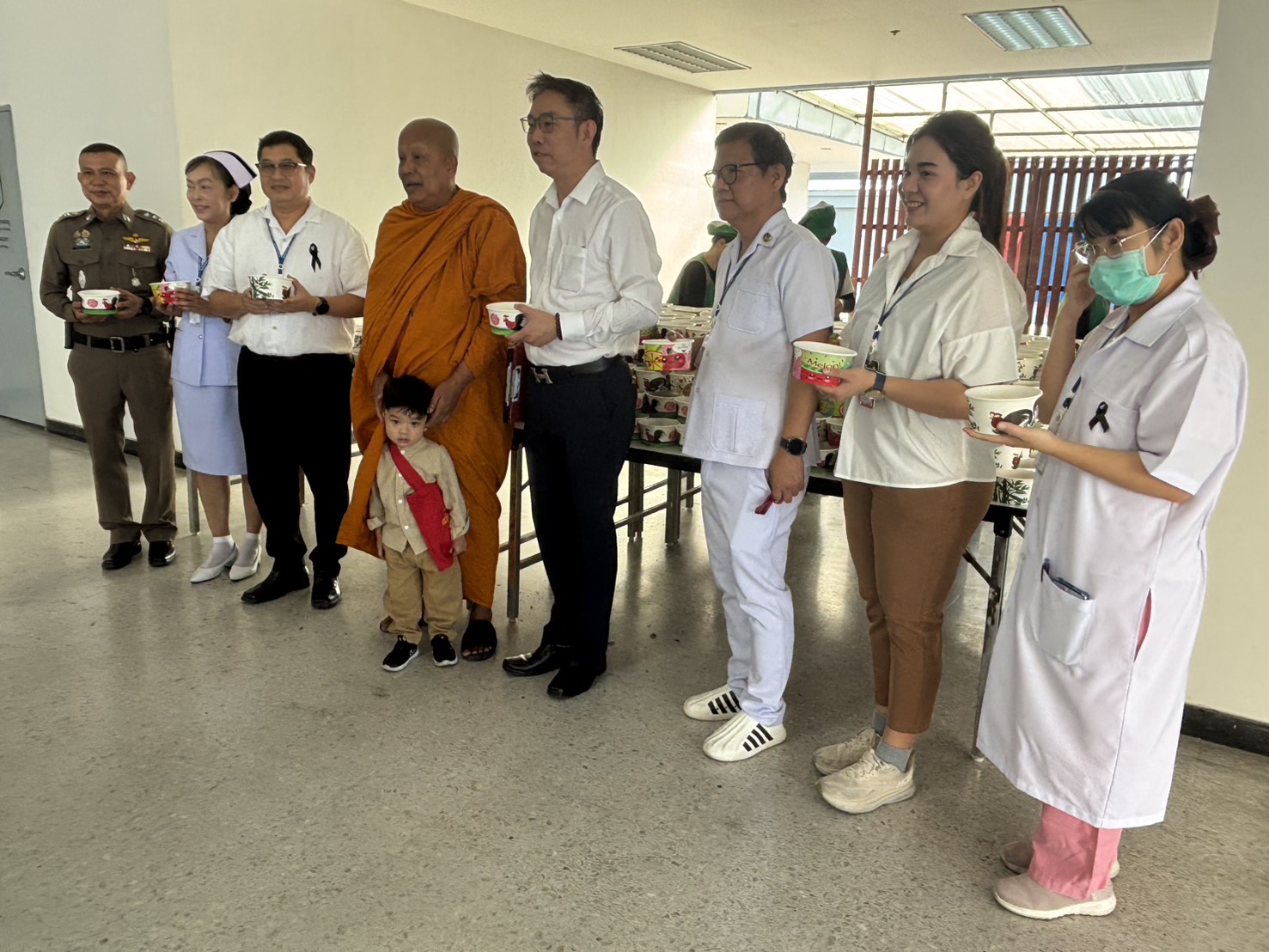 สมุทรปราการ เจ้าคุณแจ้ตั้งโรงทานแจก ก๋วยเตี๋ยวและขนมหวานแก่บุคลากรรพ.บางพลีอุทิศถวายเป็นพระราชกุศลฯ