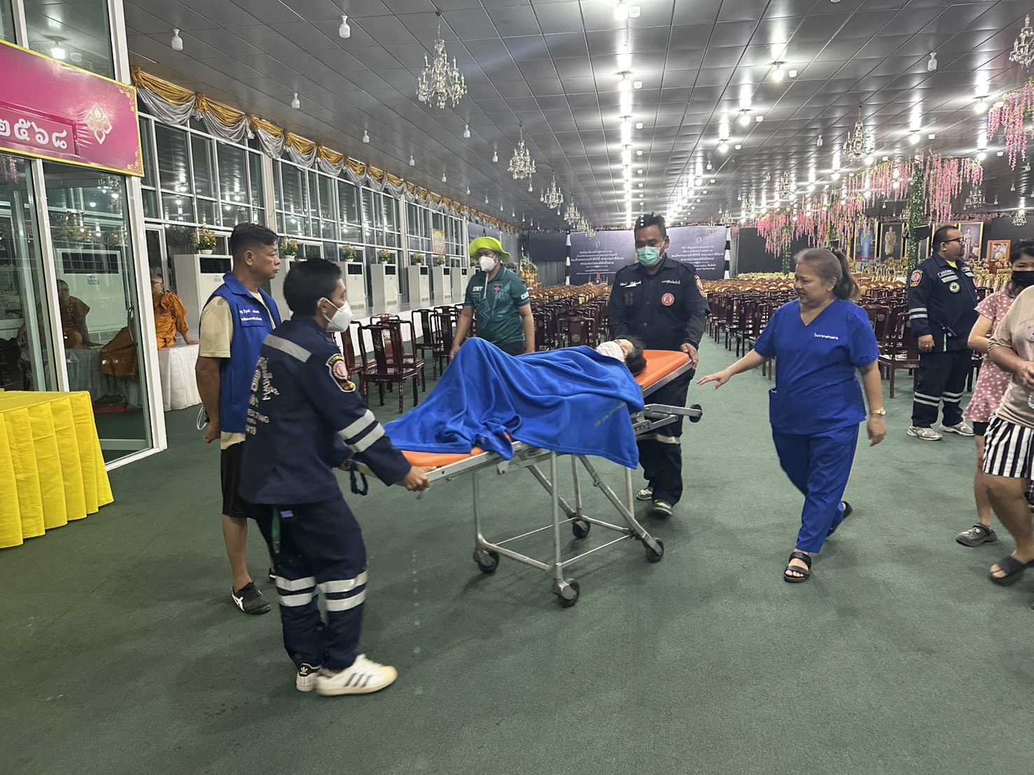 พร้อมฉีดพ่นน้ำเพื่อดับกลิ่นและระงับการกระจายของสารเคมี และช่วยเหลือทำการอพยพประชาชนในรัศมี1กิโลเมตรจากที่เกิดเหตุ โดยจัดตั้งศูนย์ช่วยเหลือและสั่งการ(ชั่วคราว) ที่ วัดไร่ขิง พระอารามหลวง ซึ่งห่างจุดเกิดเหตุ ก่อนนำตัวผู้ที่สูดดมสารเคมีแต่ไม่ได้รับบาดเจ็บ มาพักที่ศูนย์ช่วยเหลือฯ จำนวน 110 ราย และในส่วนของผู้ที่มี อาการ แน่นหน้าอก หายใจไม่ออก คลื่นไส้ เวียนหัว อาเจียน เลือดกำเดาไหล นำส่งโรงพยาบาลสามพราน จำนวน 7 ราย โรงพยาบาลเมตตาประชารักษ์ จำนวน 2 ราย รวมจำนวน 9 ราย