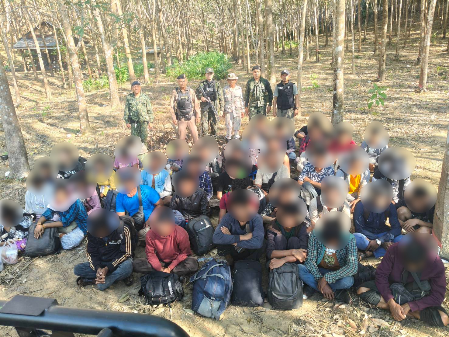 กาญจนบุรี ทหาร ฉก.ลาดหญ้า กกล.สุรสีห์ รวบแรงงานเถื่อนกลางป่า 43 ชีวิต ค่าหัว 2 หมื่น แลกทำงานมาเลเซีย