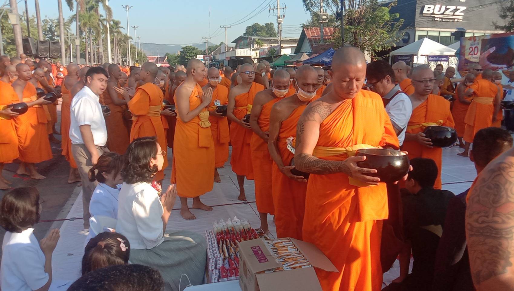 ในพิธีพุทธศาสนิกชนได้พร้อมใจกันแสดงตนเป็นพุทธมามกะ อาราธนาศีล 5 เจริญสมาธิภาวนาถวายเป็นพระราชกุศลแด่ สมเด็จพระนางเจ้าสิริกิติ์ พระบรมราชินีนาถ พระบรมราชชนนีพันปีหลวง ประธานในพิธีนำถวายไทยธรรมเป็นสังฆทาน ประธานสงฆ์ได้เผดียงอาหารตักบาตรเพื่อนำไปมอบให้คณะสงฆ์ 323 วัด และเจ้าหน้าที่ทหารตำรวจในพื้นที่ 4 จังหวัดภาคใต้ อีกทั้งช่วยเหลือบรรเทาทุกข์ผู้ประสบภัยในทุกภูมิภาคของประเทศไทย จากนั้นคณะสงฆ์กว่า 10,000 รูปแปรแถวรับบิณฑบาต