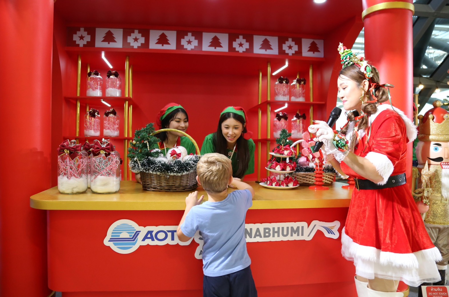 โดยจัดกิจกรรมวันละ 3 รอบ ได้แก่ เวลา 10.00–11.00 น. 14.00–15.00 น. และ 18.00–19.00 น. เปิดโอกาสให้ผู้โดยสารได้ร่วมสนุก ลุ้นรับของขวัญหลากหลาย สร้างบรรยากาศแห่งความสุขให้กับการเดินทางในช่วงเทศกาล นอกจากนี้ ในวันที่ 26 ธันวาคม 2568 ทสภ. ได้จัดขบวนพาเหรดคริสต์มาส ณ บริเวณอาคารเทียบเครื่องบินรองหลังที่ 1 (SAT-1) นำโดยซานตาคลอสและเอลฟ์ เดินทักทายพร้อมมอบของขวัญให้แก่ผู้โดยสารอย่างใกล้ชิด รวมของขวัญทั้งสิ้น 2,500 ชิ้น สร้างความประทับใจและรอยยิ้มให้แก่ผู้โดยสารตลอดเส้นทางการเดินทาง